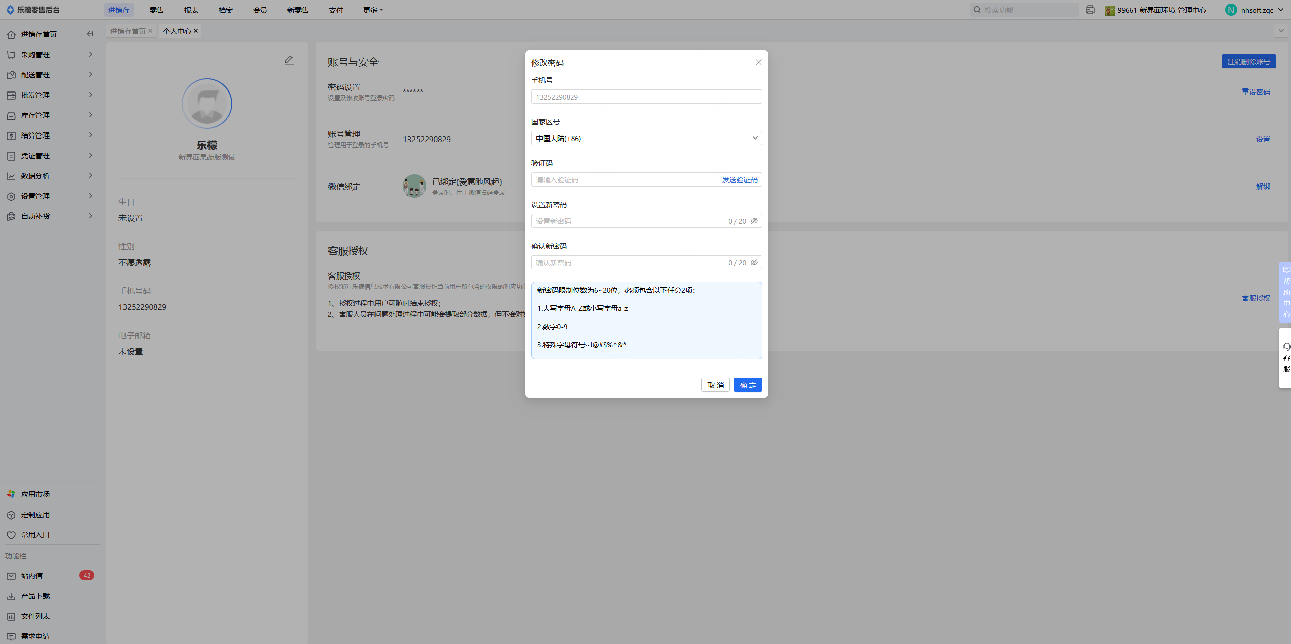 登录界面点击忘记密码,输入账套号(4-5位数的机构号),输入用户手机号、新密码,接收并输入验证码后修改完毕