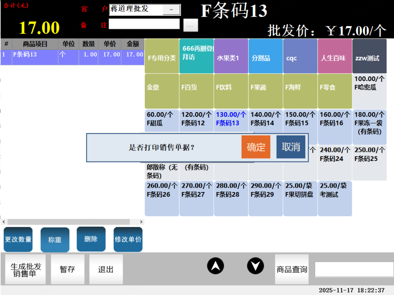 最后点击生成批发销售单吗,需要打印单据点击确定