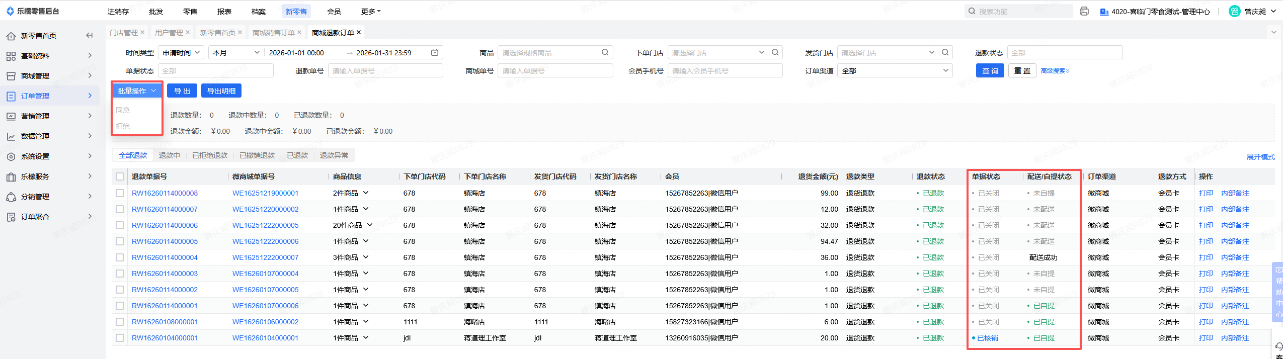 👉【操作路径】:·新零售-订单管理-商城退款订单
