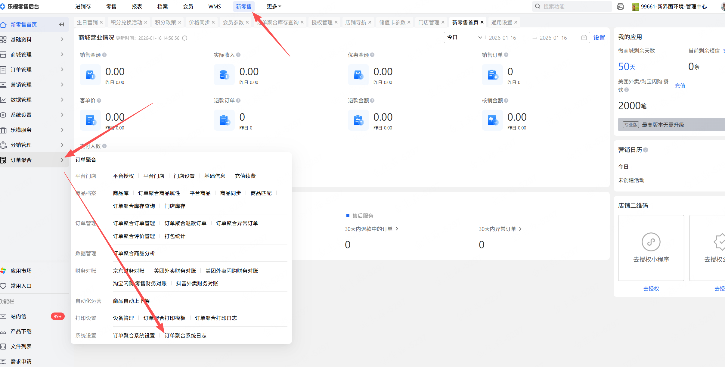 👉【操作路径】:·新零售-订单聚合-系统设置-订单聚合打印日志