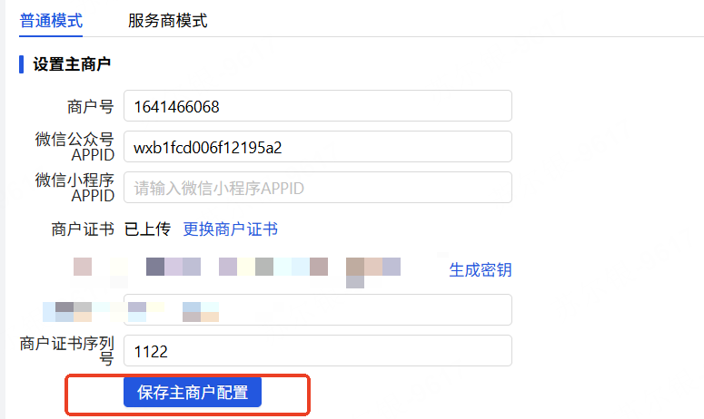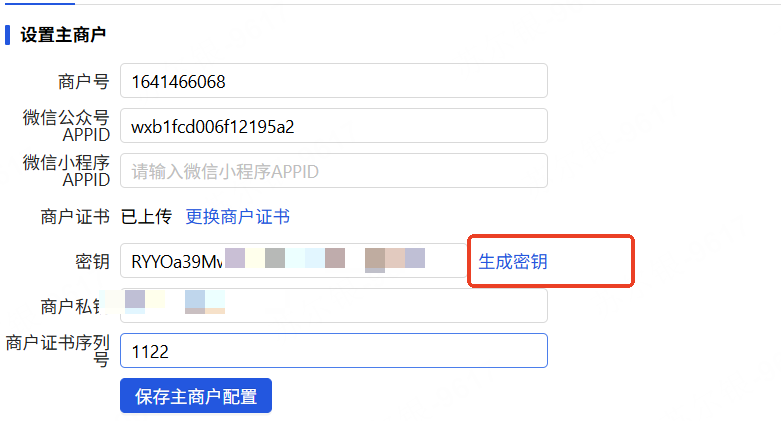 进入乐檬支付-应用-渠道配置-微信-生成密钥-复制密钥-保存主商户配置