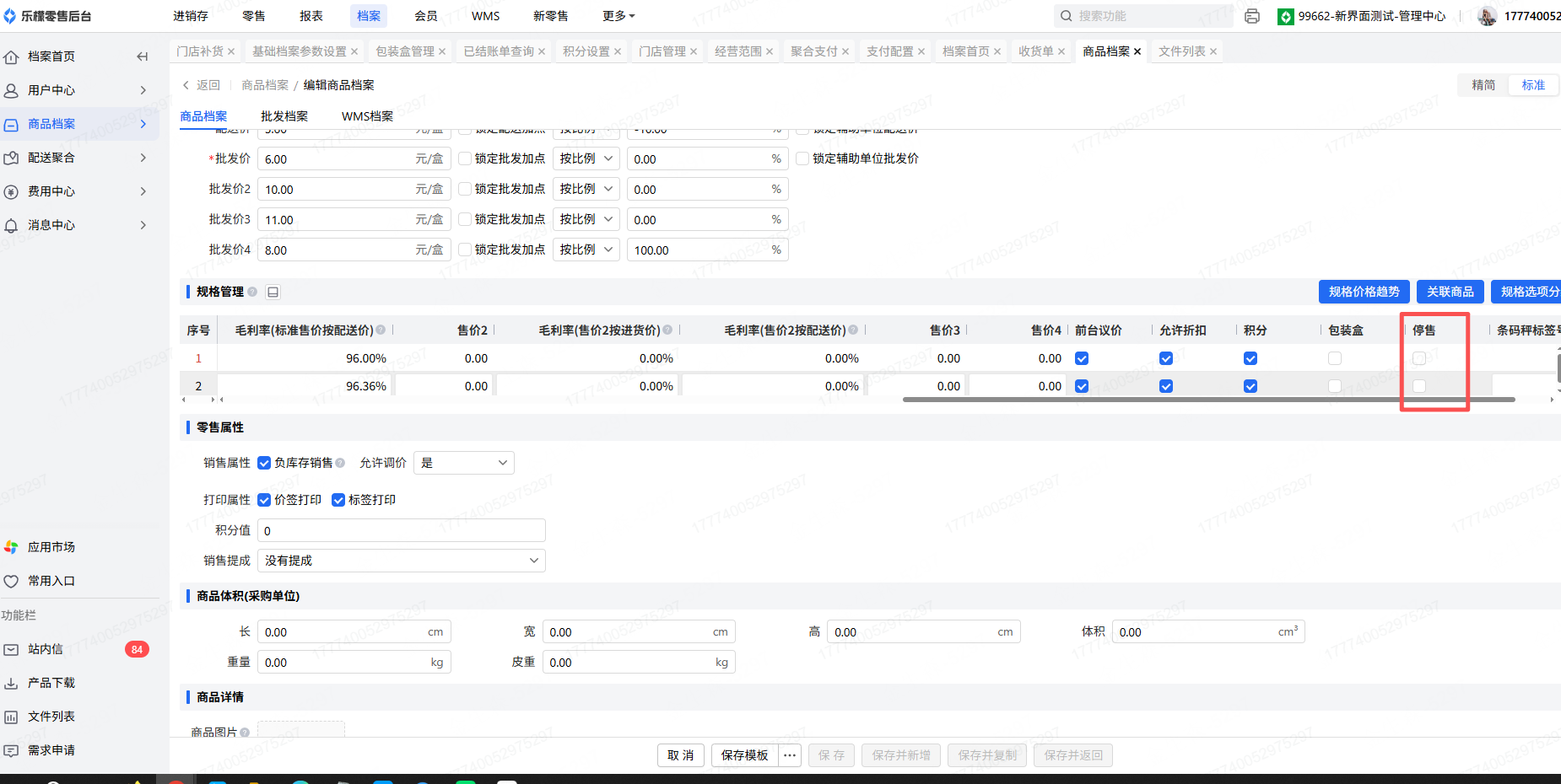 商品档案-停售标记