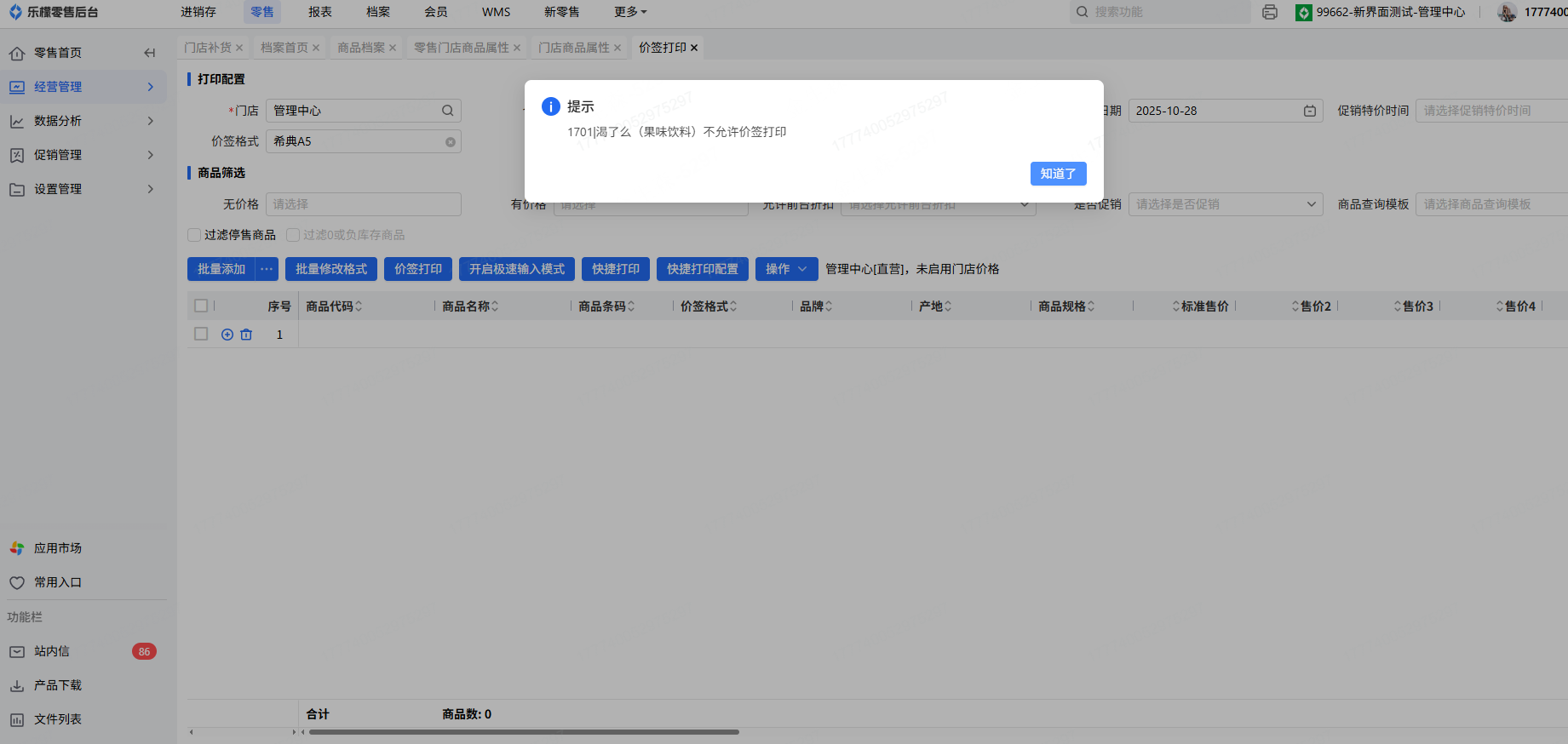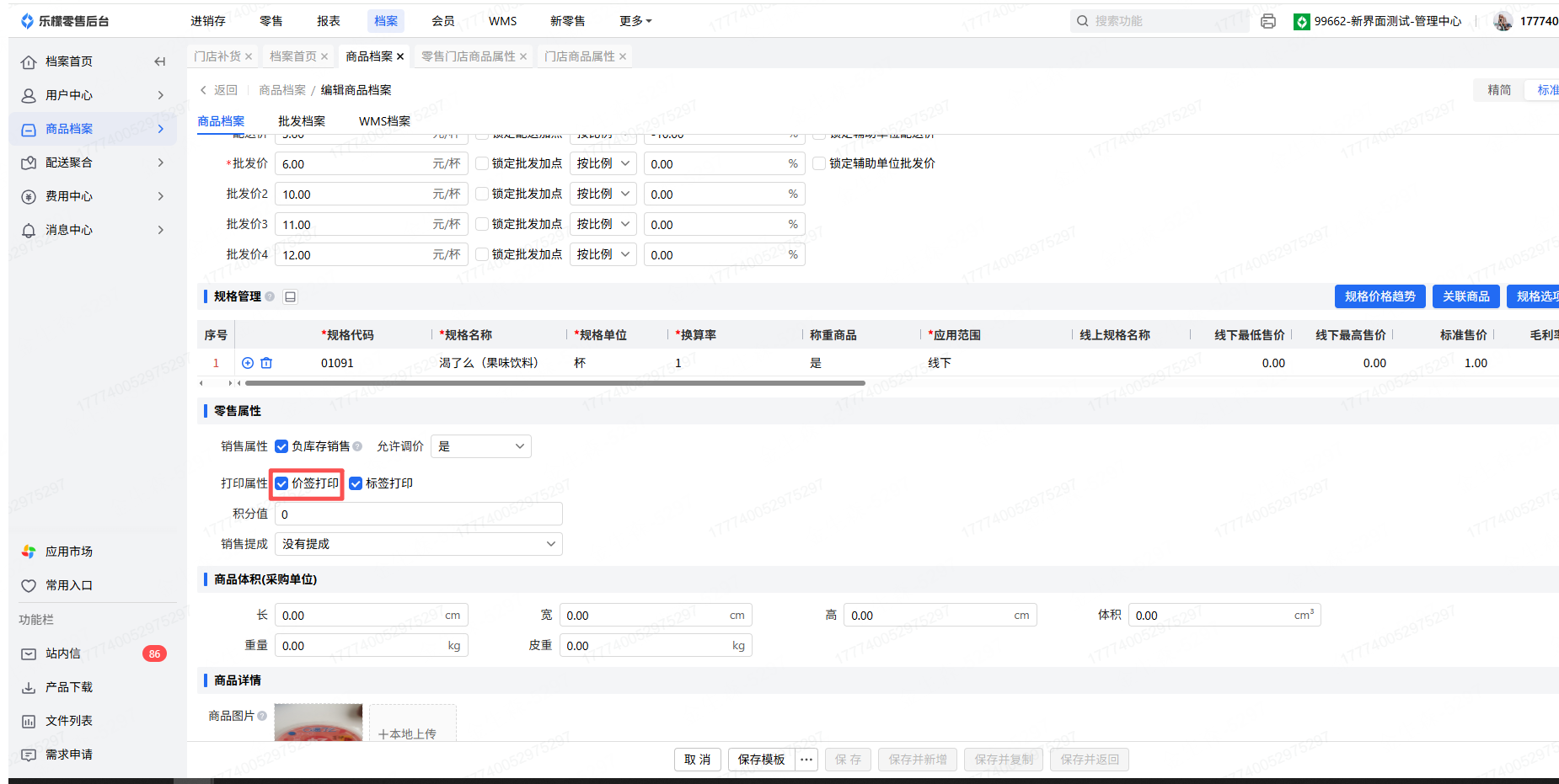 👉【操作路径】:·档案-商品档案-零售属性-价签打印