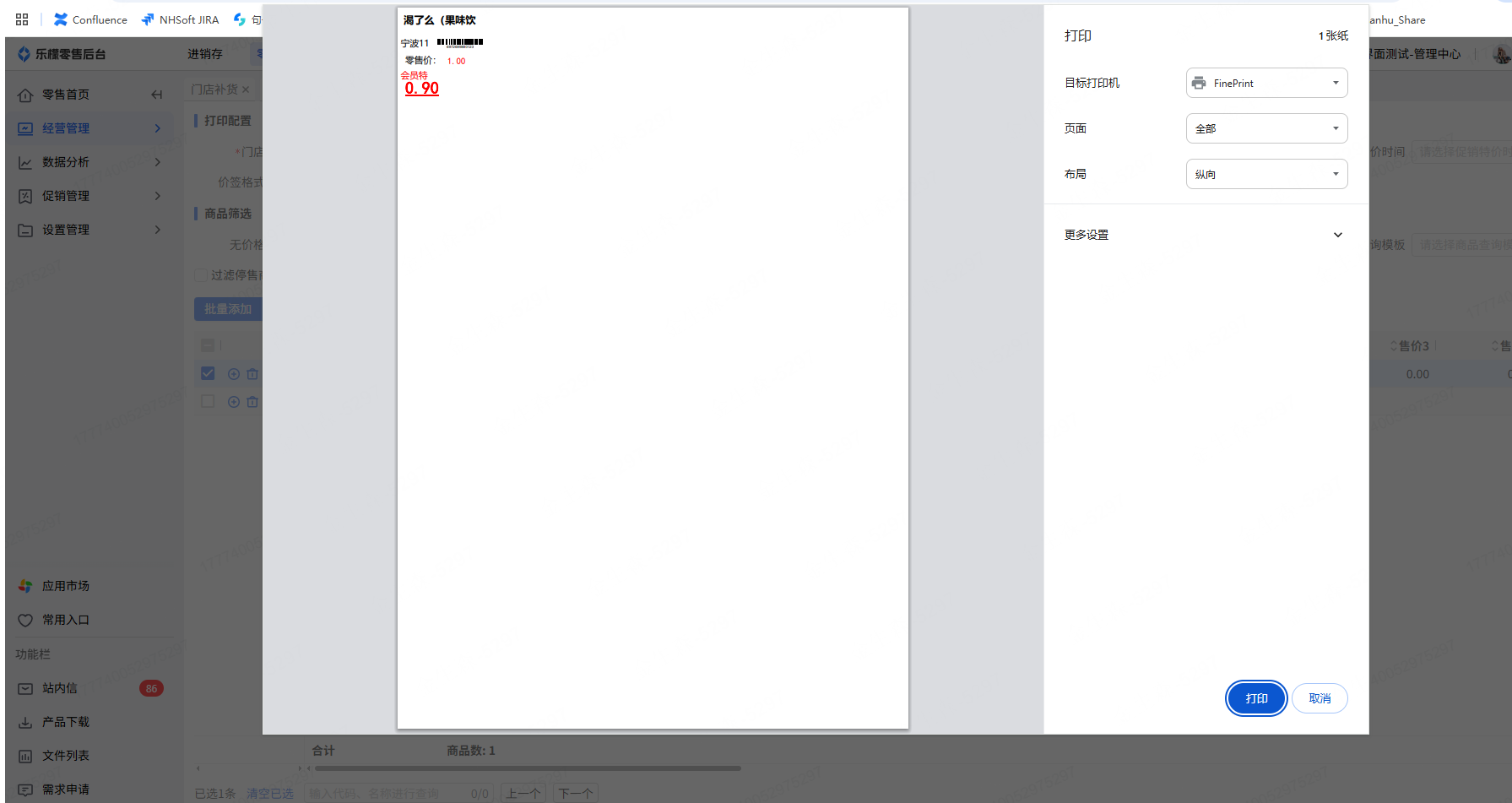 前台打印(零食、QT系统支持前台打印,果蔬不支持)