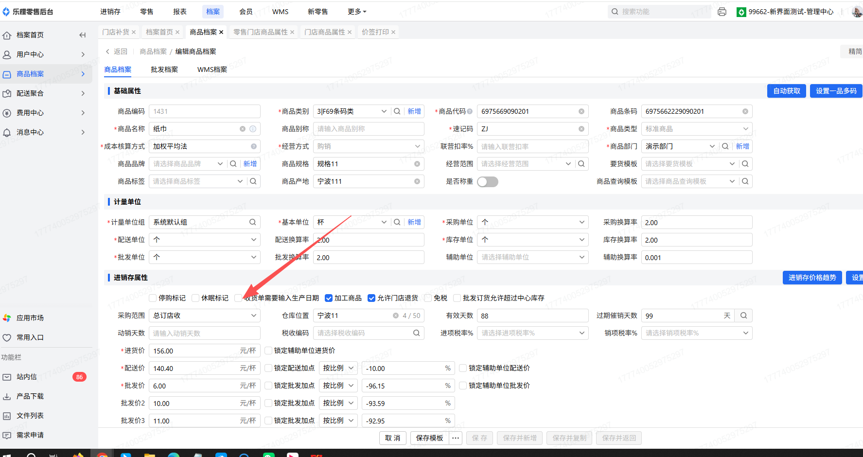 👉【操作路径】:·档案-商品档案-进销存属性-收货单需要输入生产日期
