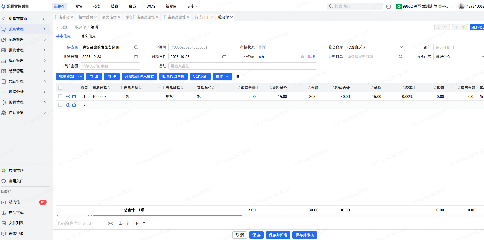 未开启参数时,采购单、收货单可直接进行保存,无法检测商品临期情况