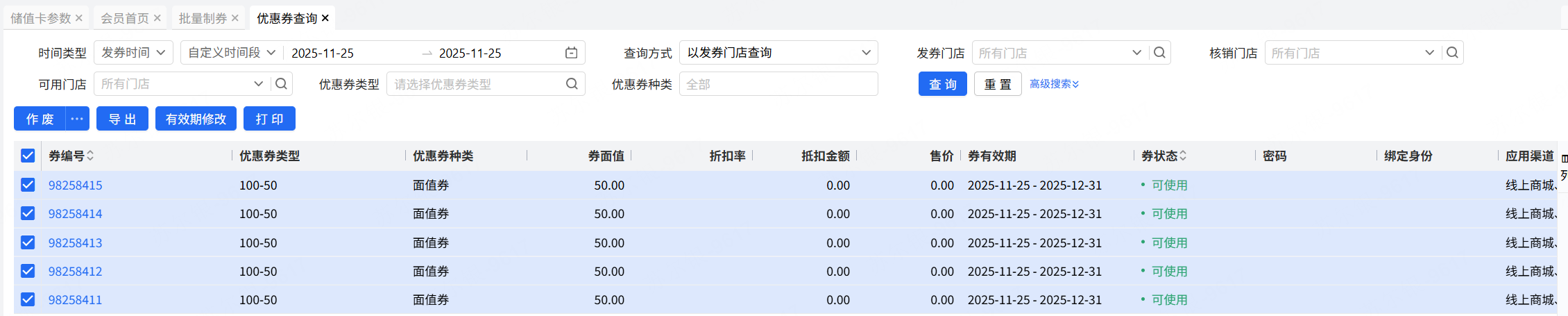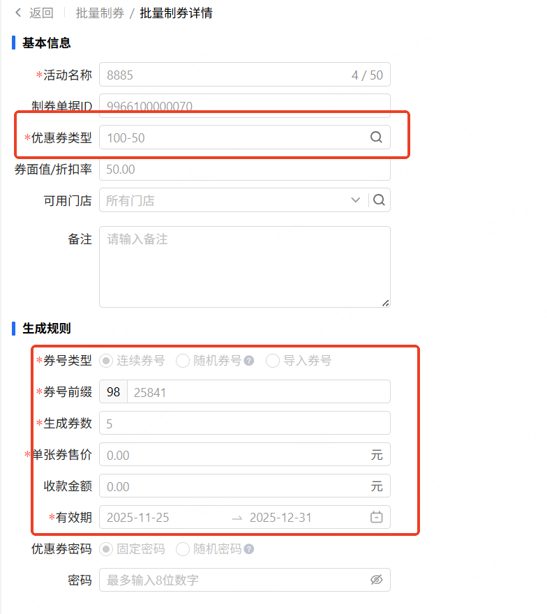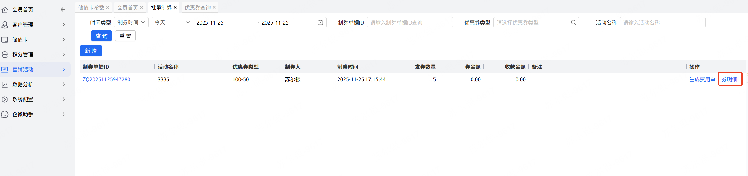 保存后,即可查看券明细