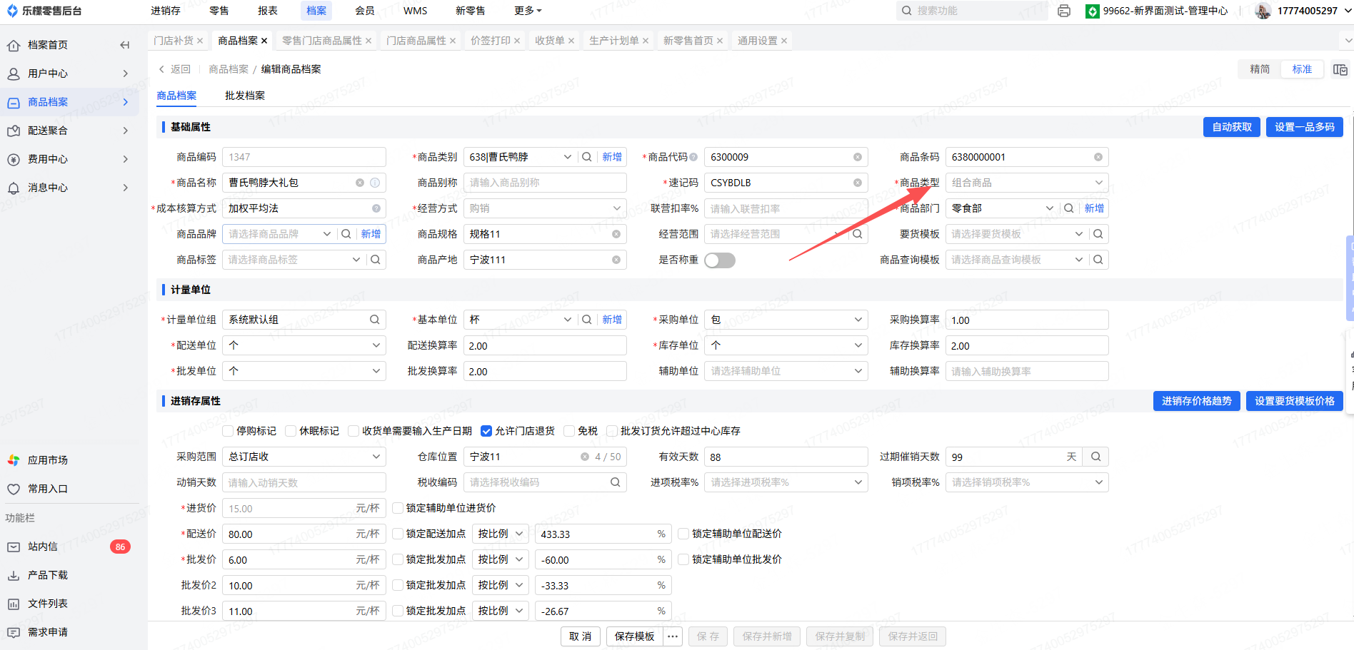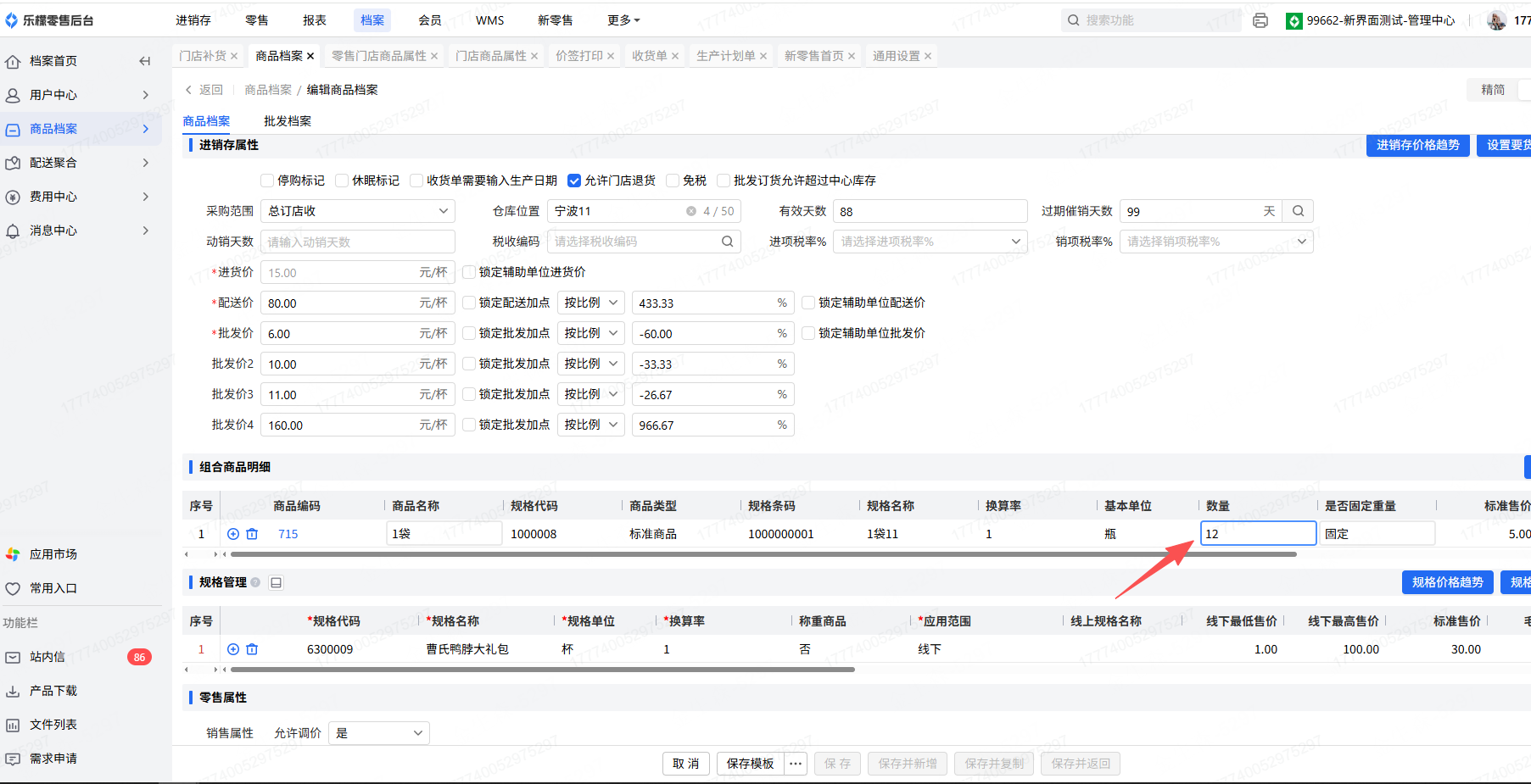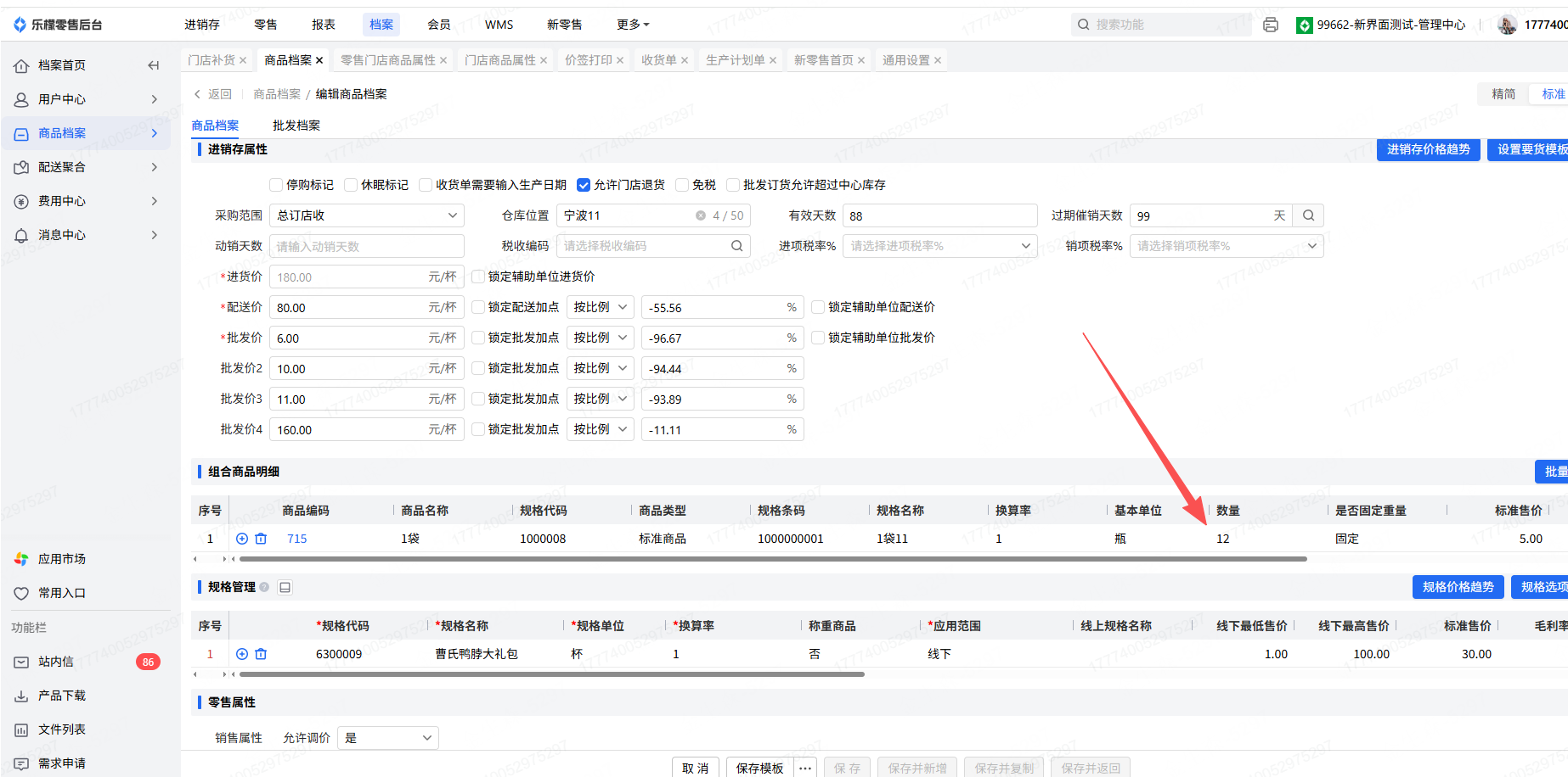 组合商品销售时不读取计量单位中的换算率,只读取组合商品明细中的换算率,明细数量设置多少,库存扣减多少