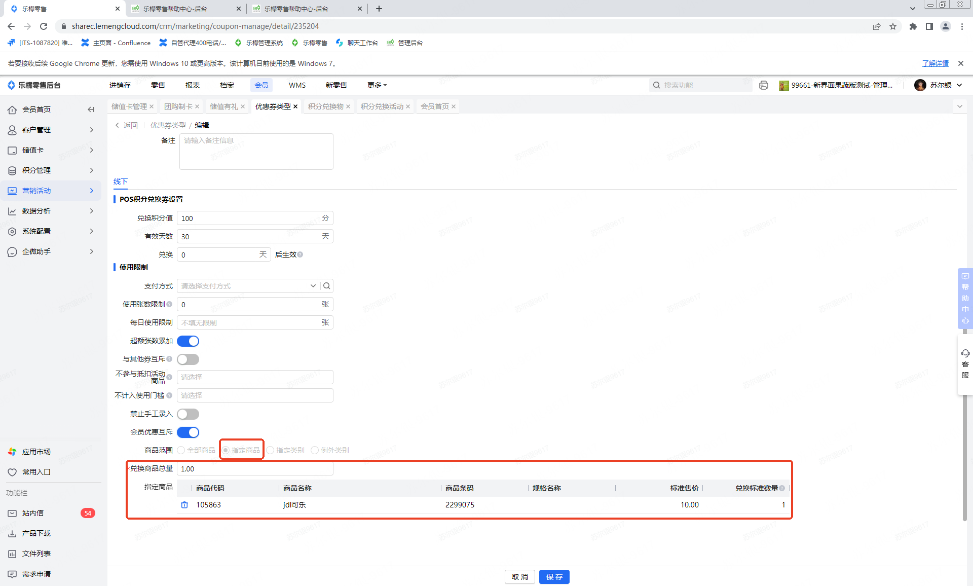 👉【操作路径】:·会员-营销活动-优惠券类型