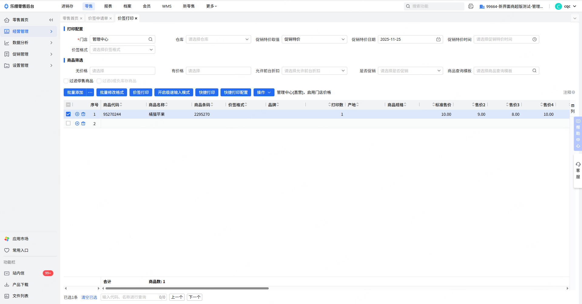 👉【操作路径】:·零售- 经营管理 -价签打印