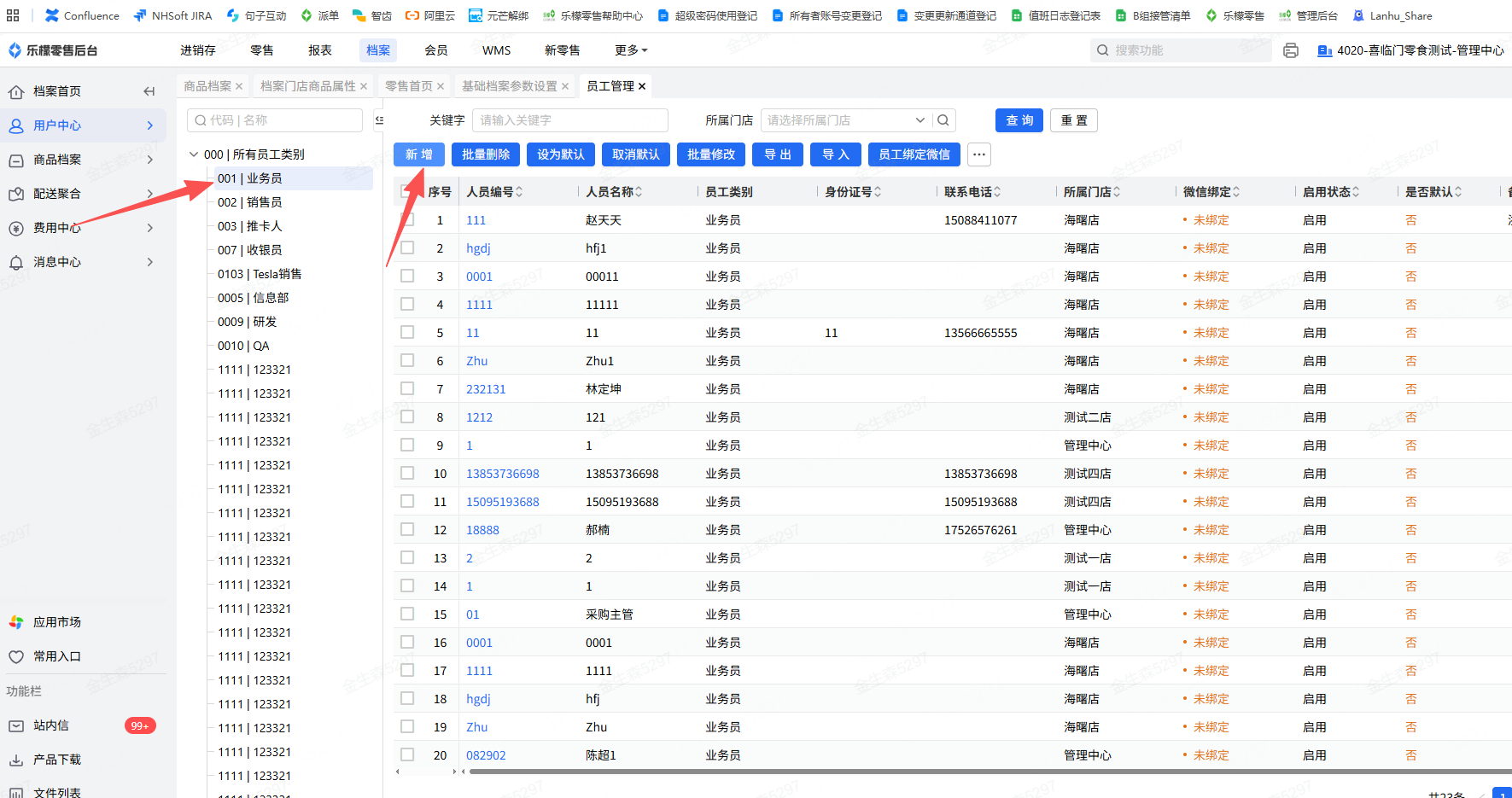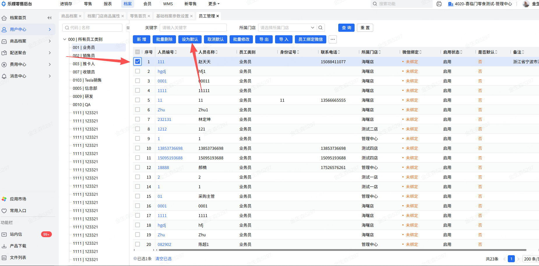业务员设置默认,即新增收货单等,自动填充对应门店默认业务员