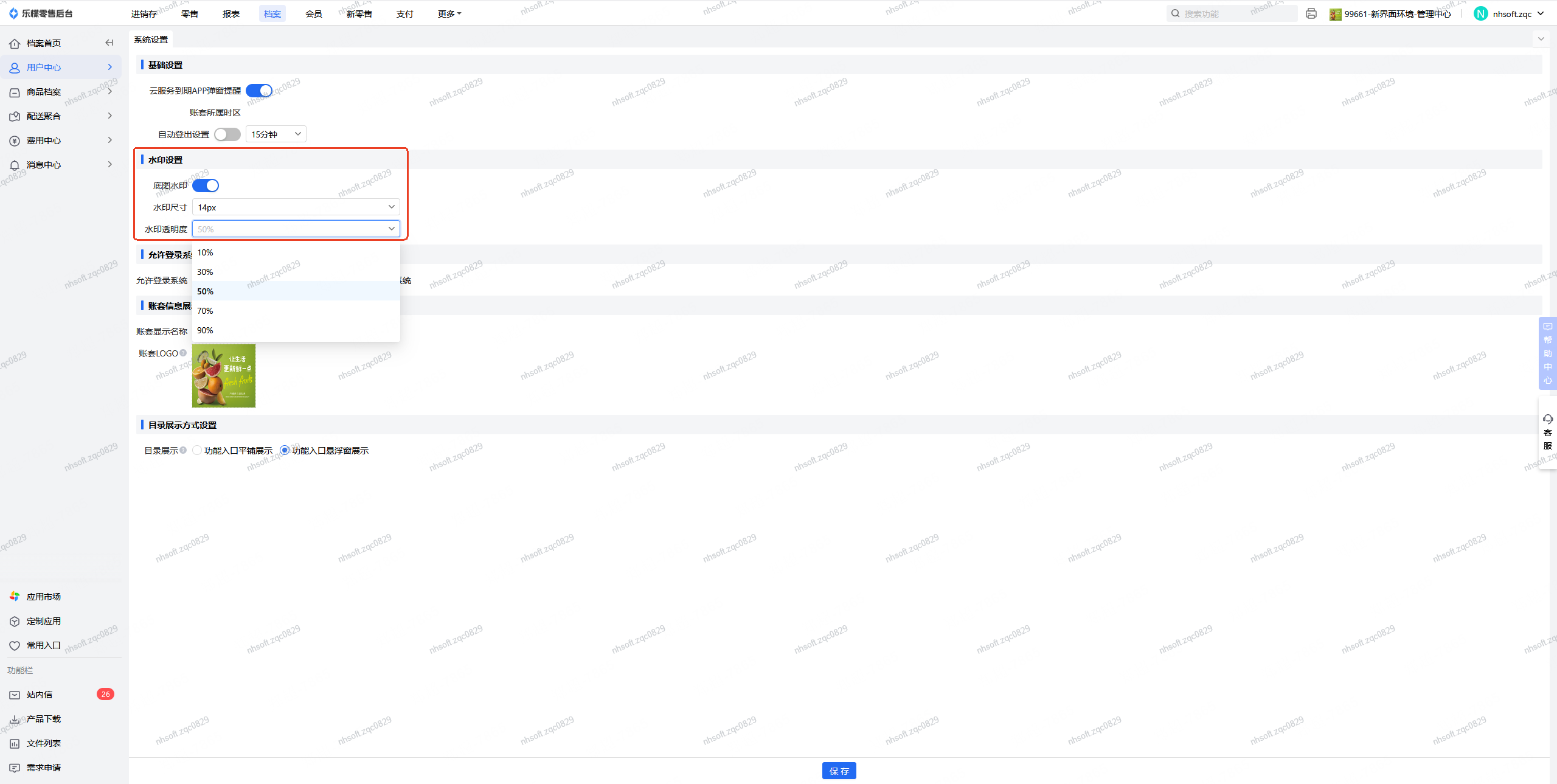 水印透明度:可选择透明度百分比,百分比越大,水印越明显