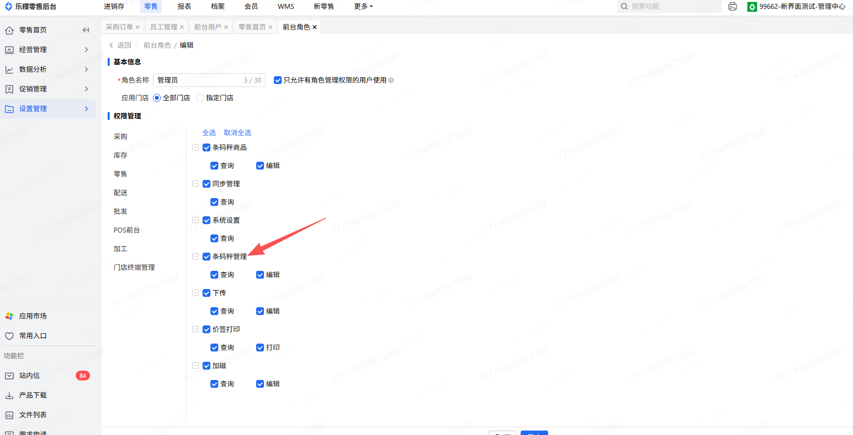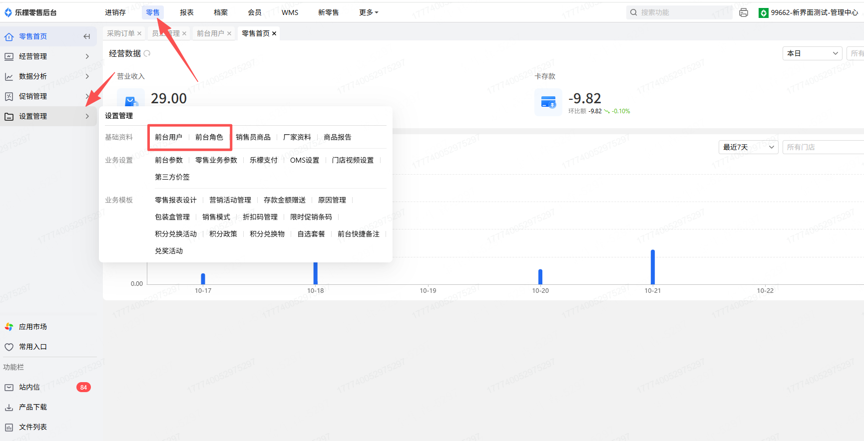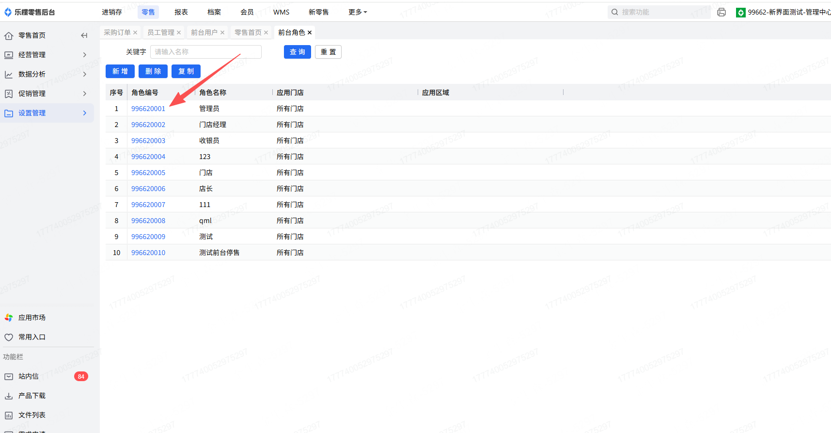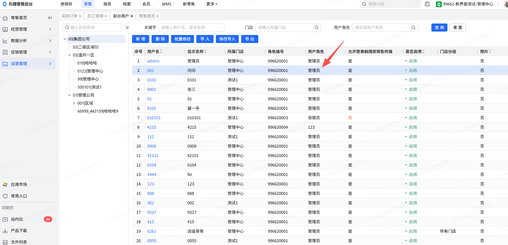 👉【操作路径】:·零售-设置管理-前台角色/前台用户