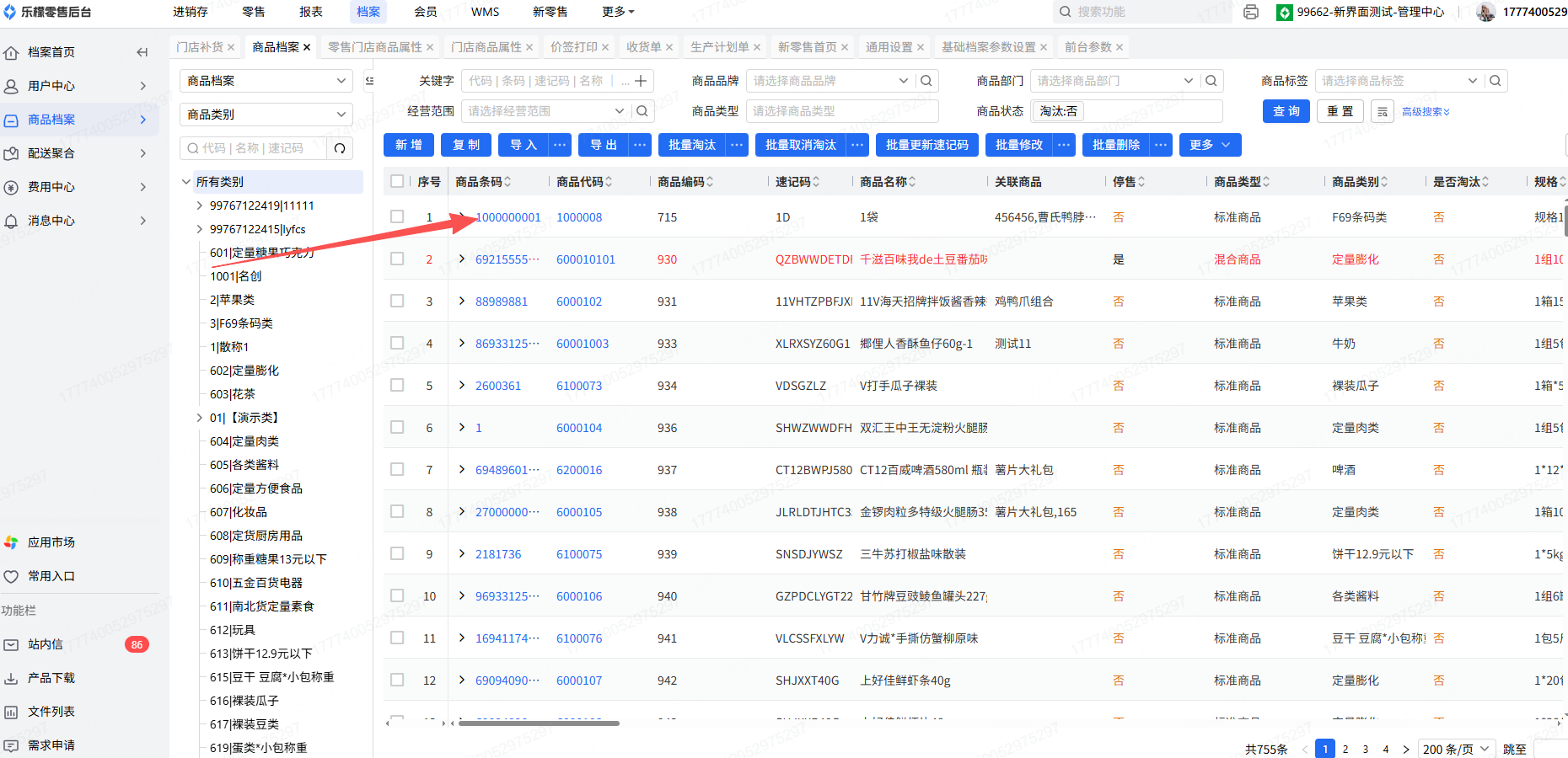 👉【操作路径】:·档案-商品档案-商品条码点击进去