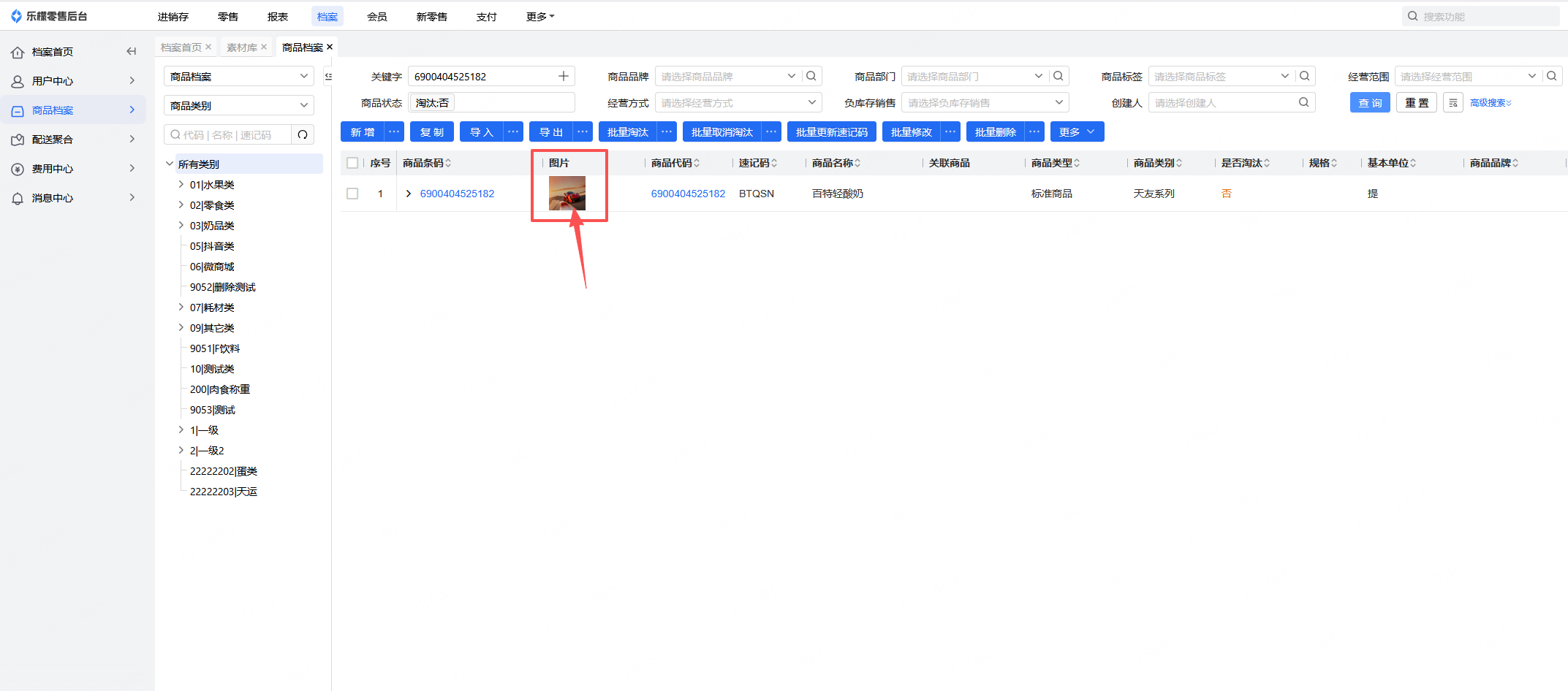 例如这里要把商品:“百特轻酸奶”导入商品图片