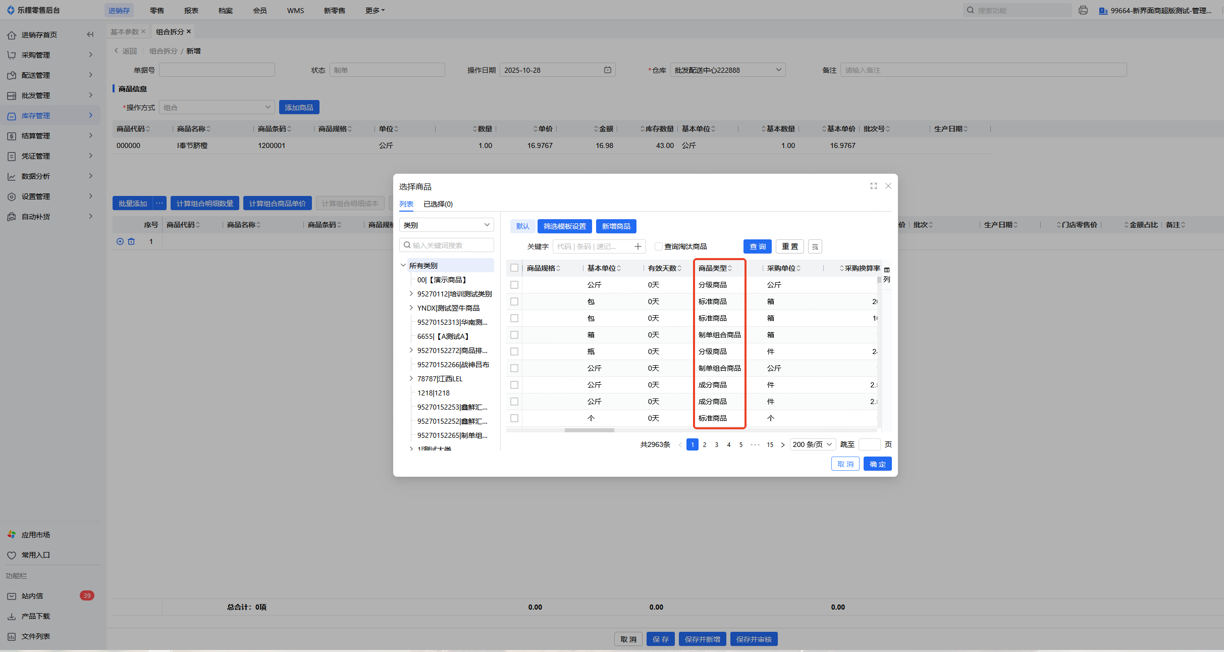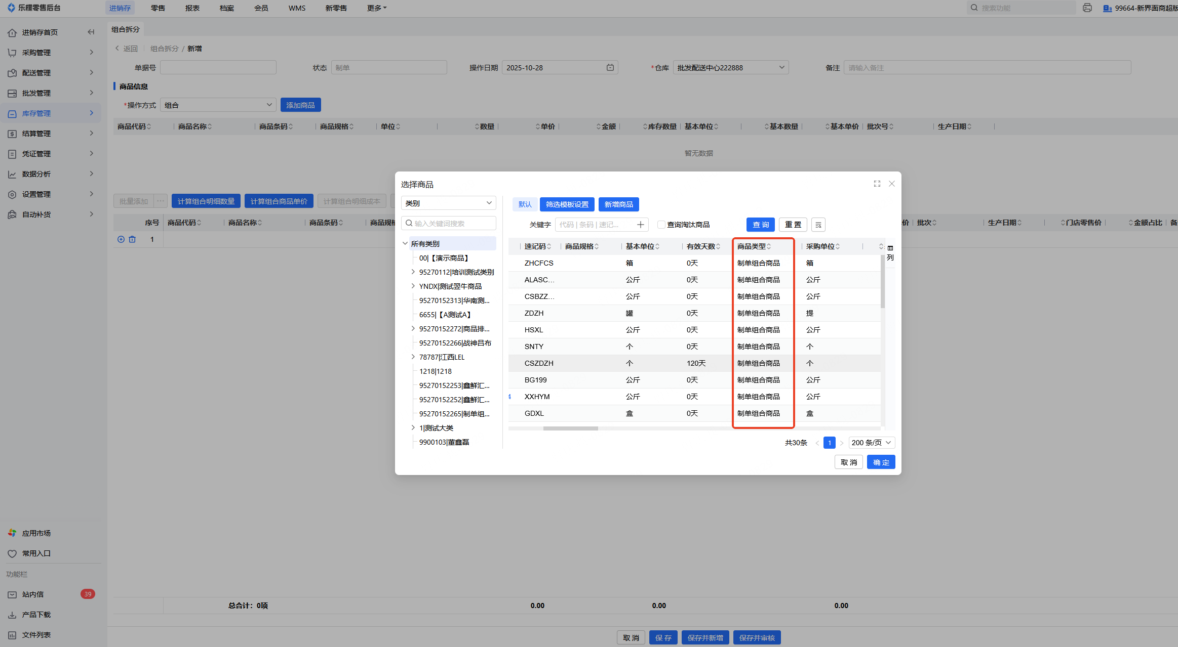 ②勾选后,组合或者拆分商品都可以自由编辑(所有商品类型都可以)