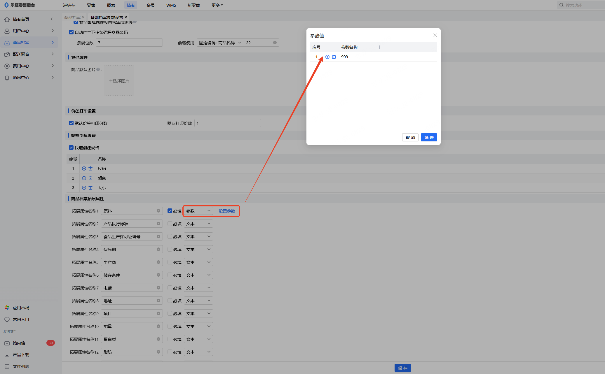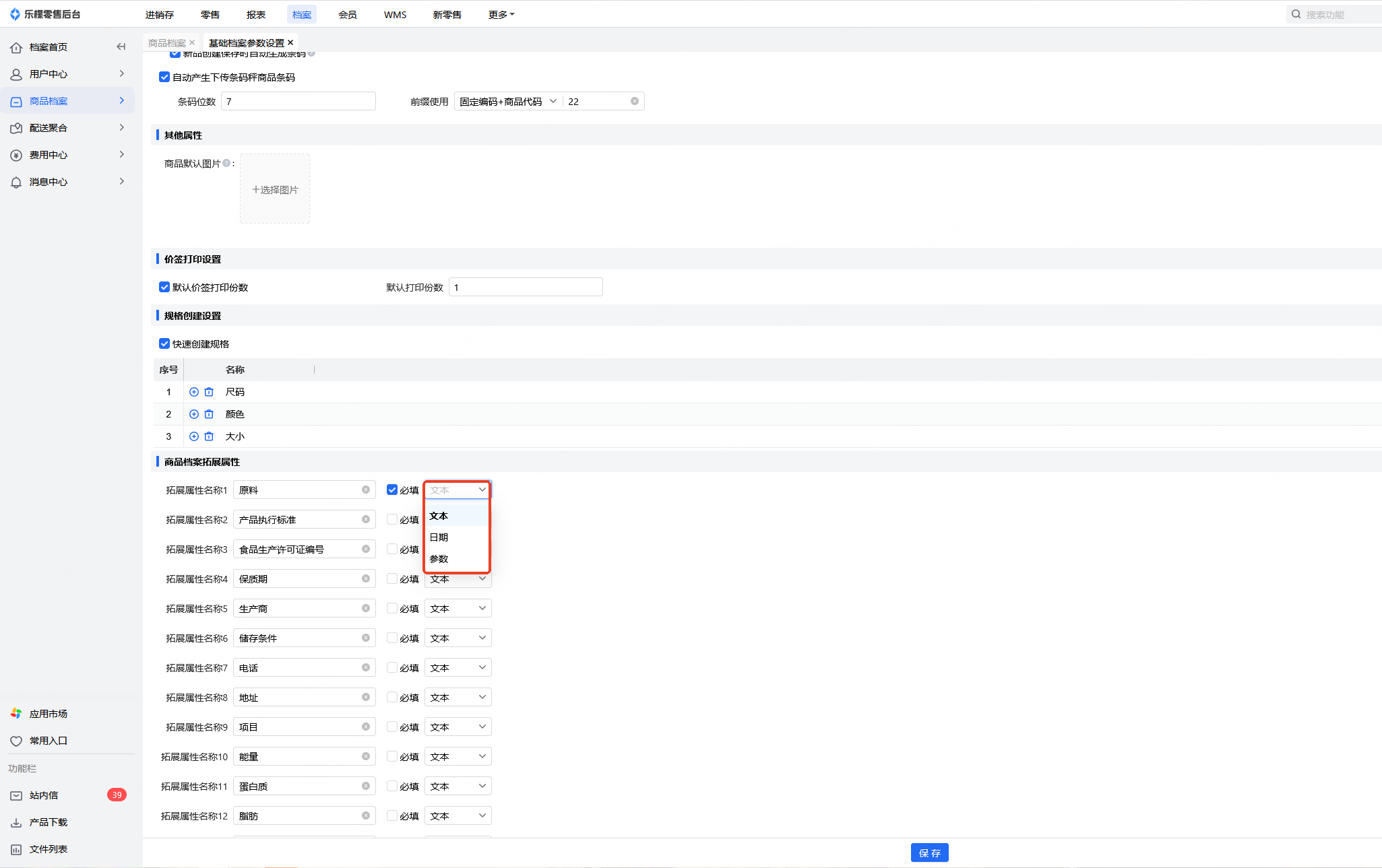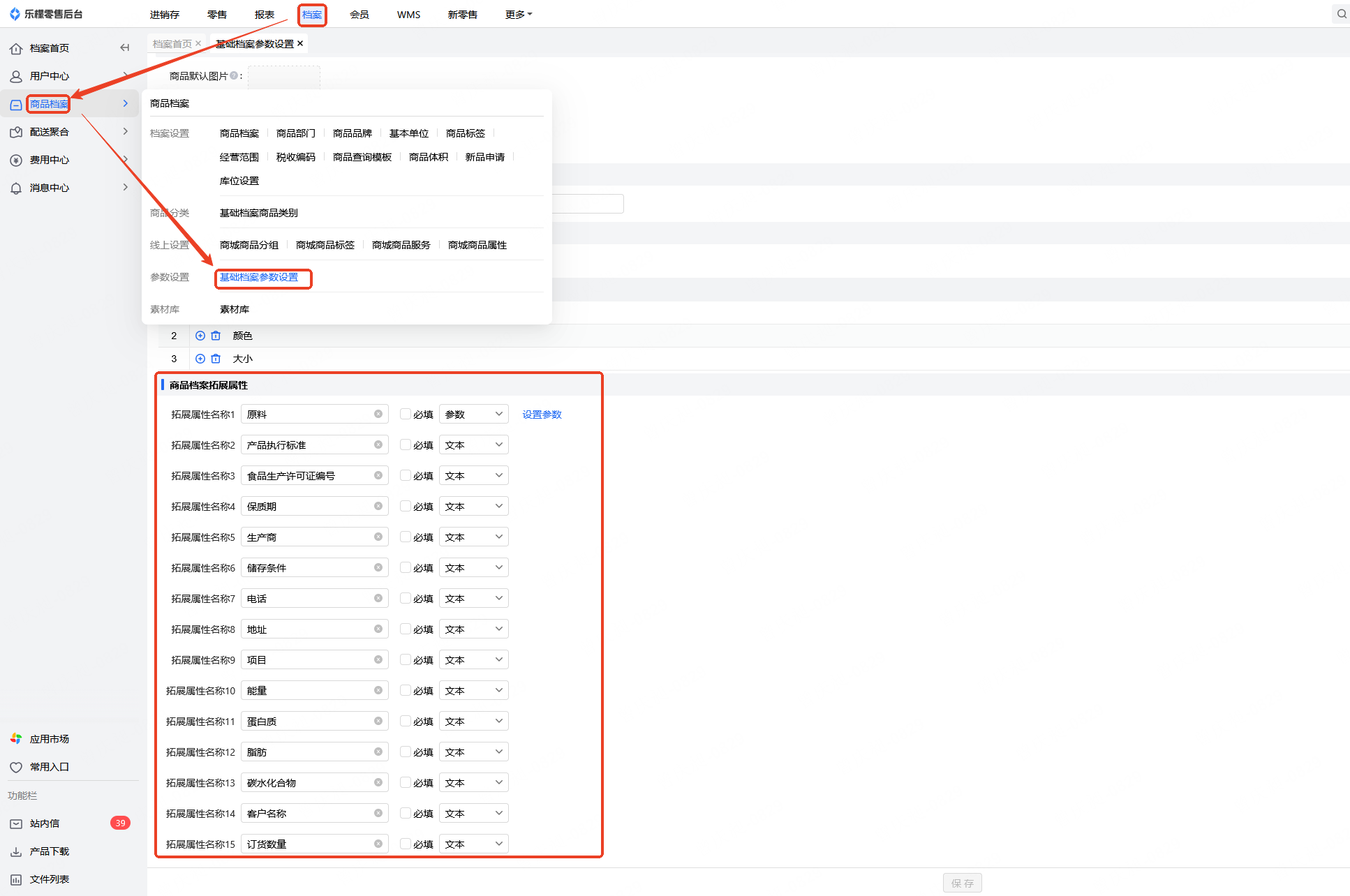 档案-商品档案-基础档案参数设置-商品档案拓展属性