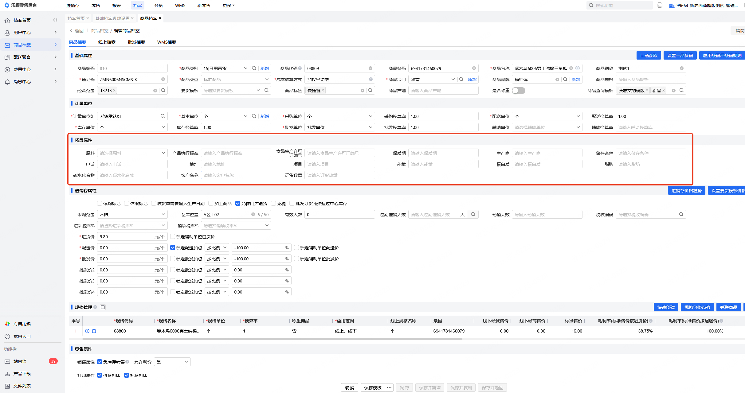 功能:自定义的拓展属性,保存后会在商品档案里增加该属性,可用于业务单据的显示和单据打印,价签打印