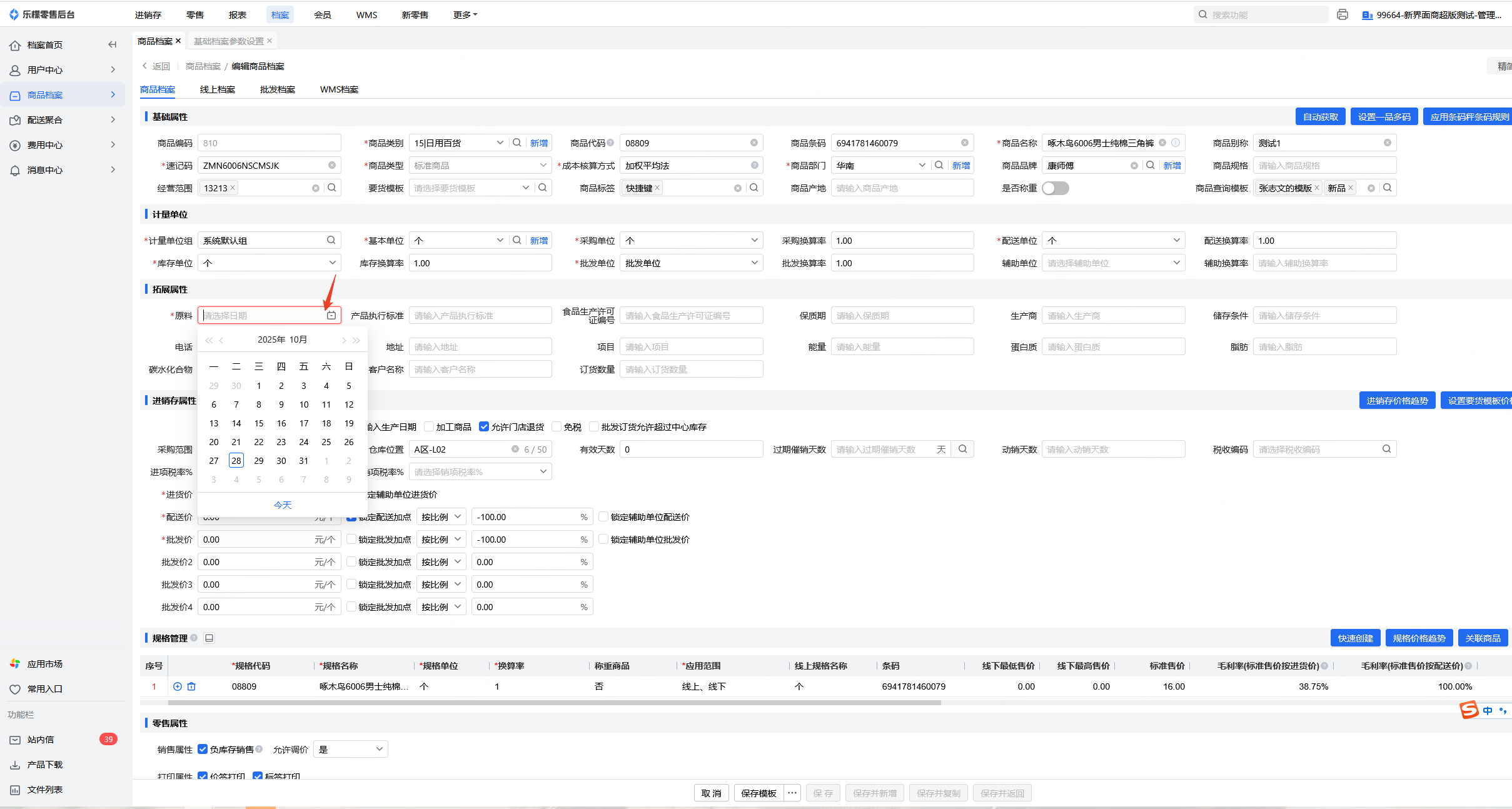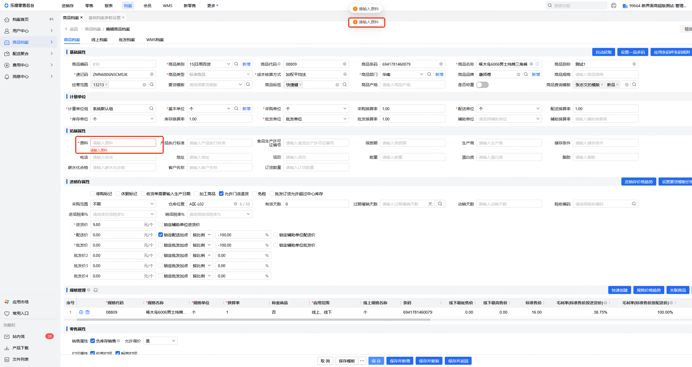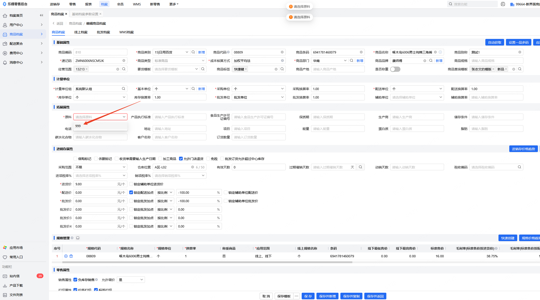 必填:开启后商品档案保存后必须录入,未录入会提示不能为空
