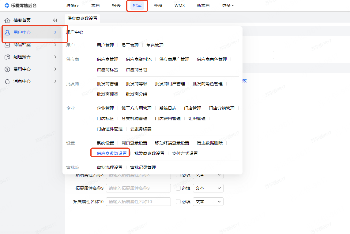 3. 参数:可以新增参数(供应商拓展属性不应用)