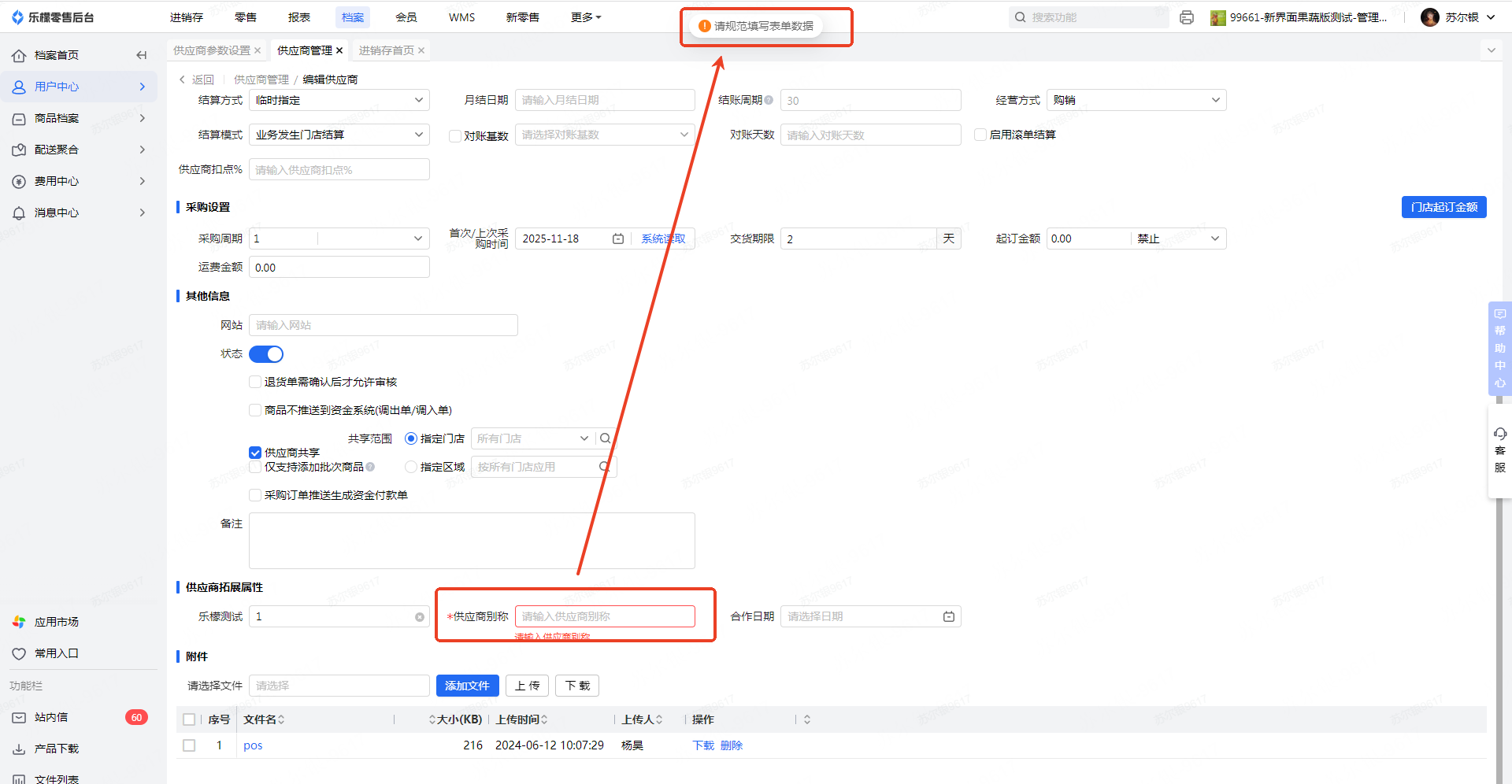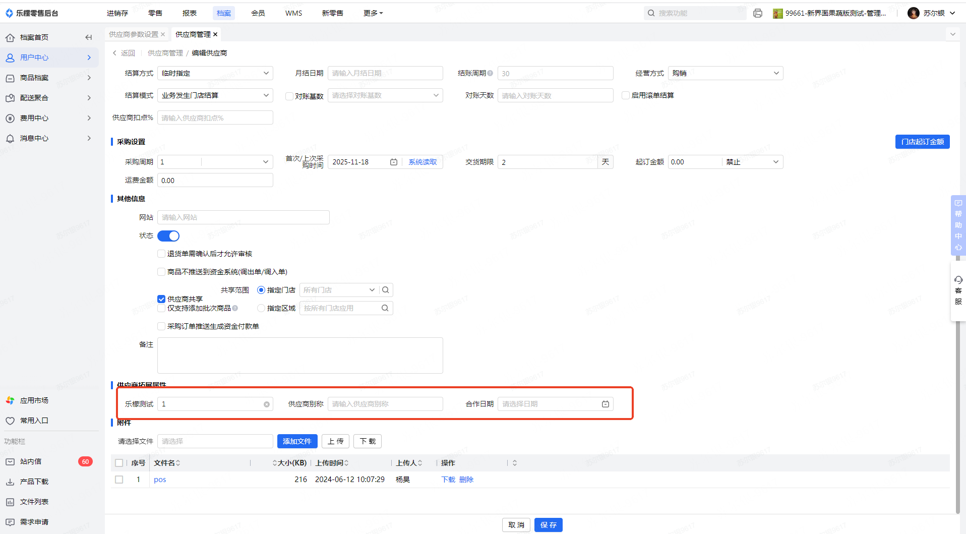 2.日期:录入对应时间信息(供应商拓展属性不应用)