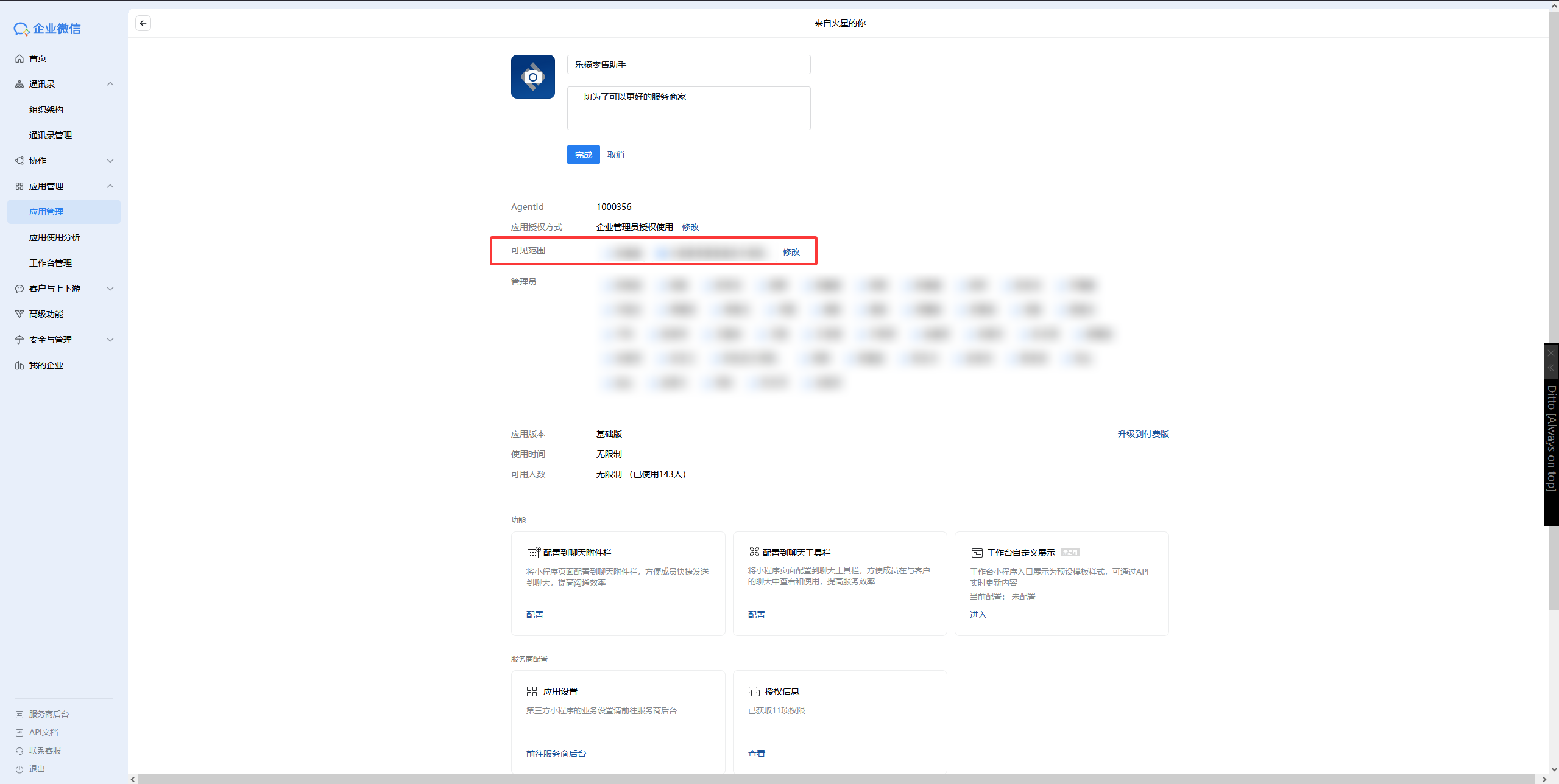 企业微信乐檬零售助手显示:应用无法使用,服务商还没有在企业微信为你开通[接口调用许可],导致无法使用此应用,请联系服务商开通