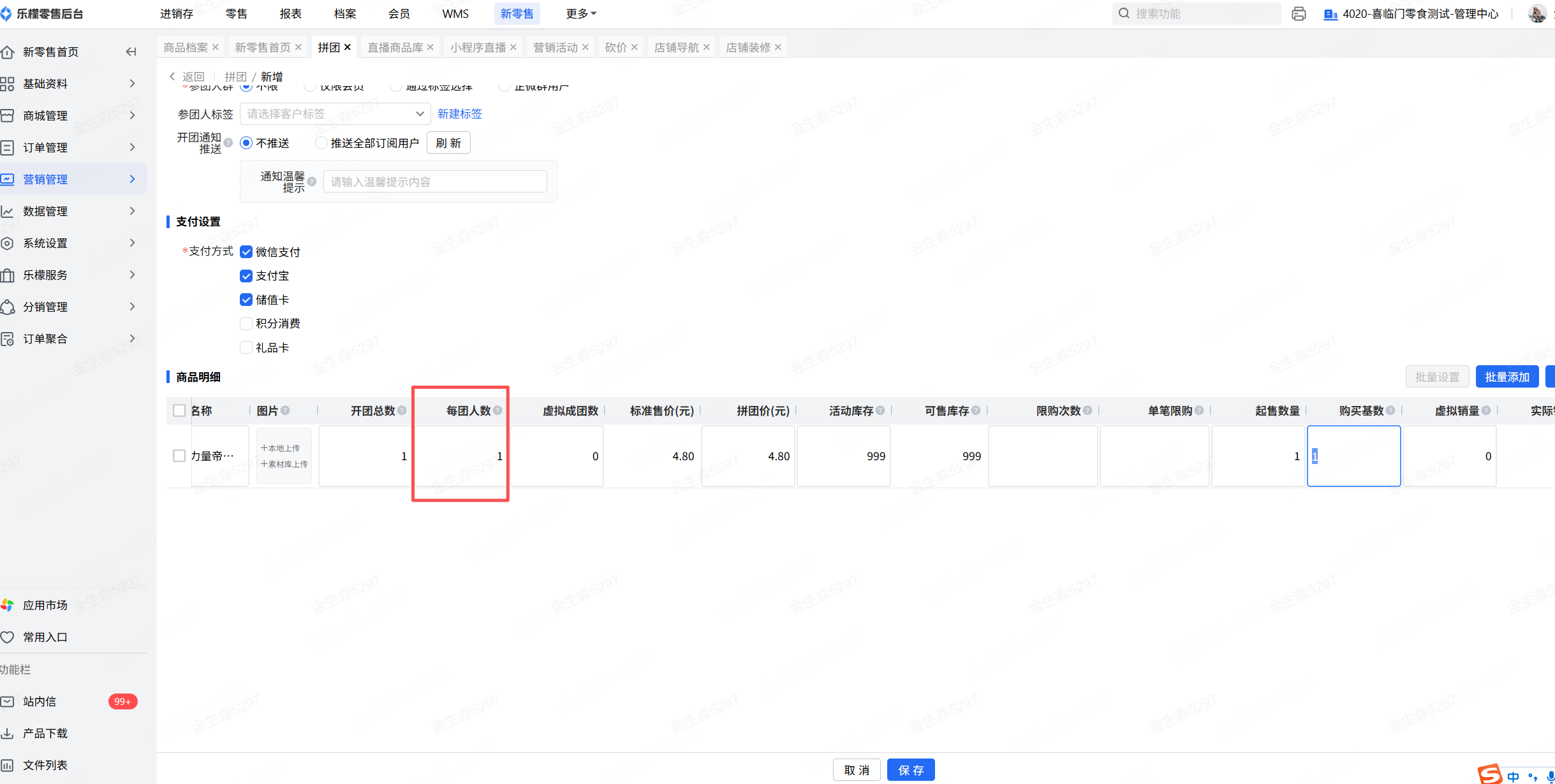 拼团设置团人数1,但是实际活动生成后部分团发现有大于每团人数的团