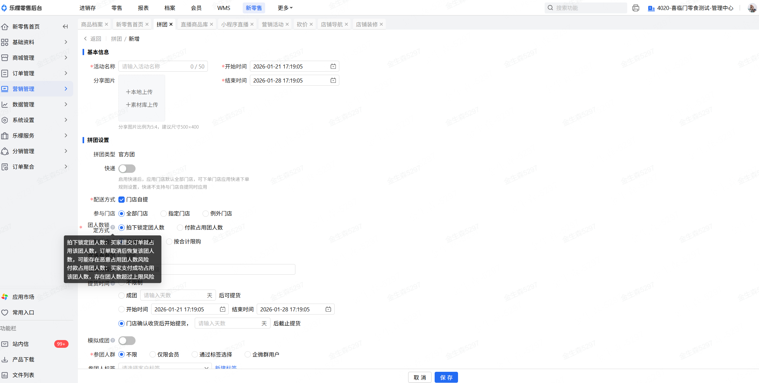 拍下锁定团人数:买家提交订单就占用该团人数,订单取消后恢复该团人数,可能存在恶意占用团人数风险