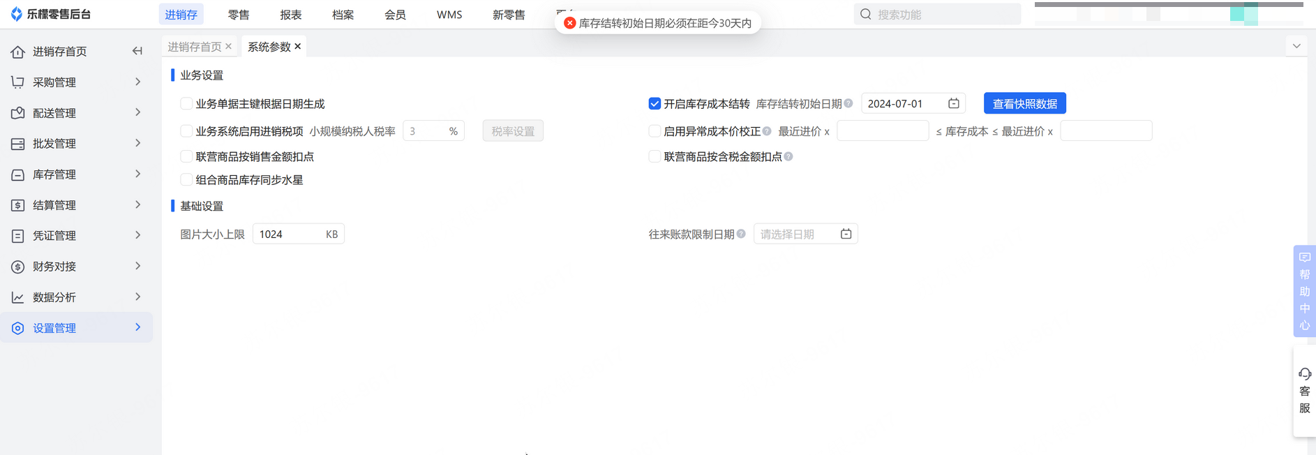 👉【操作路径】:·进销存-设置管理-系统参数