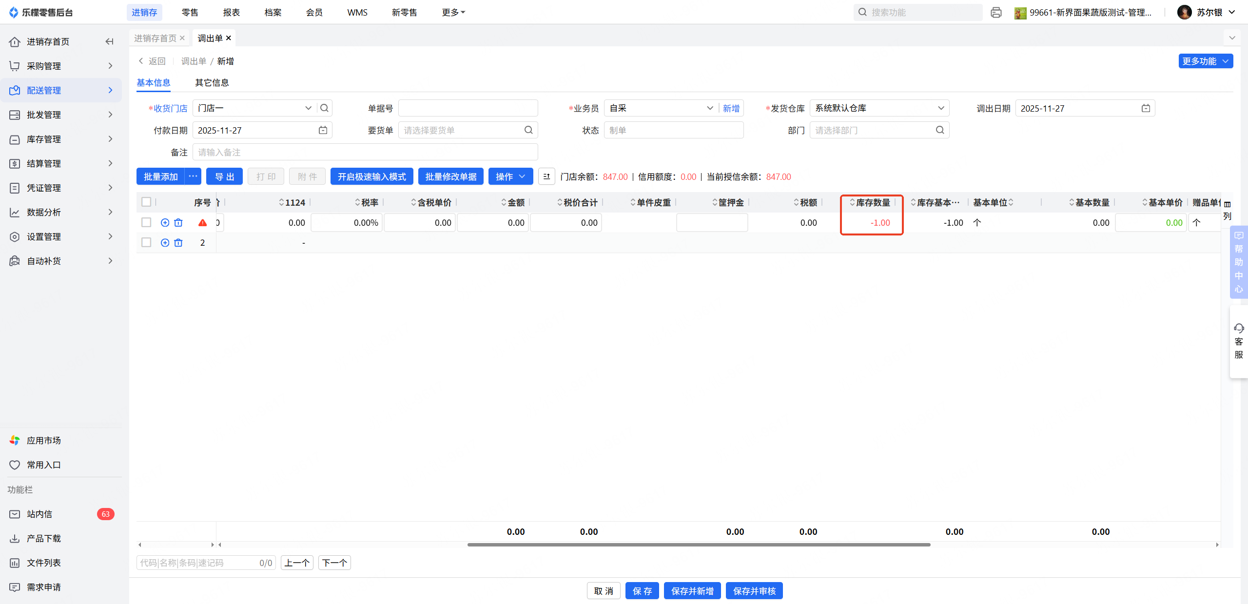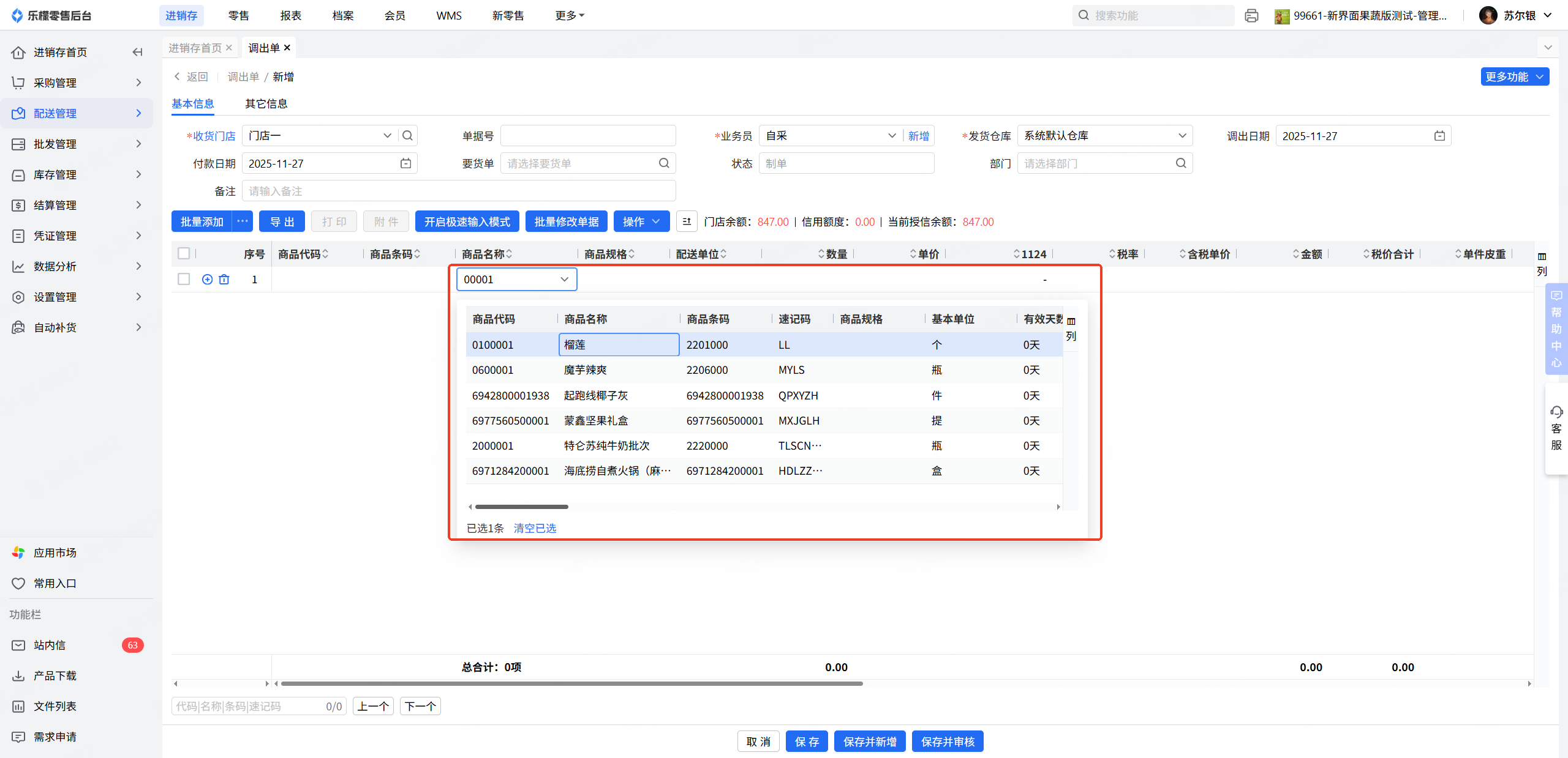 👉【操作路径】:·进销存-配送管理-调出单