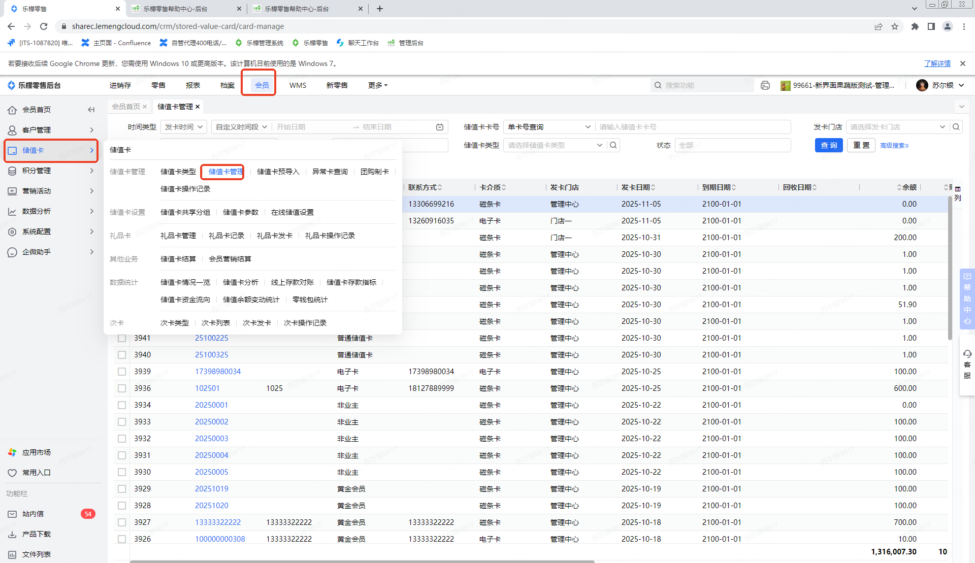 👉【操作路径】: 会员-储值卡-储值卡管理