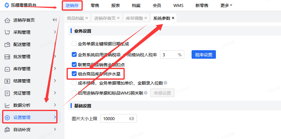 线下组合商品库存同步至线上需要开启:组合商品库存同步水星