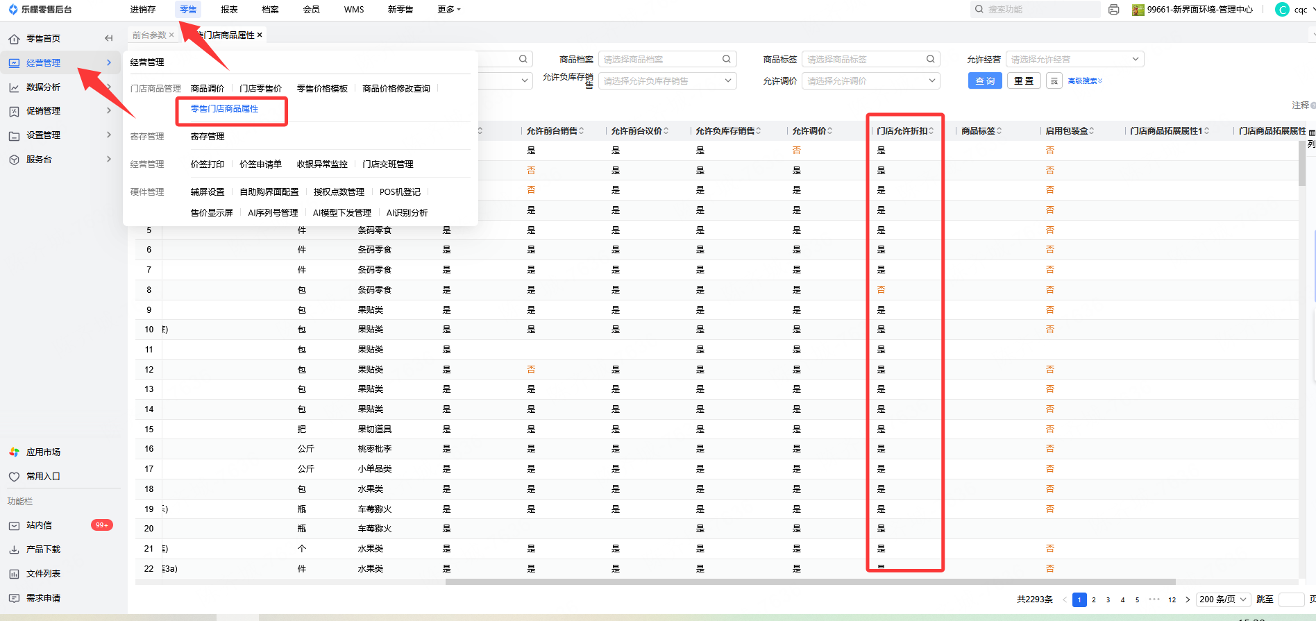 1.零售门店商品属性该门店允许前台折扣权限是否开启