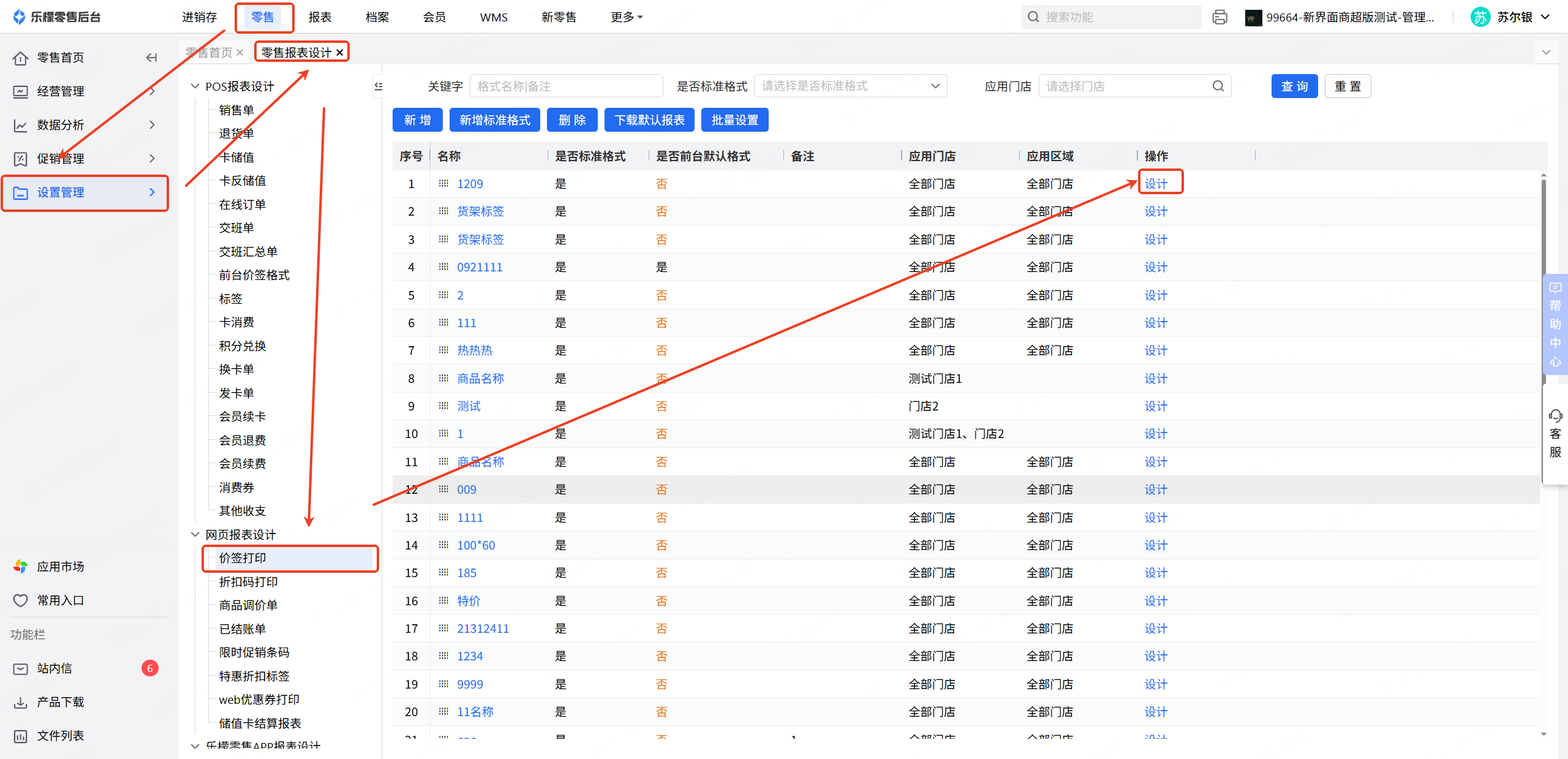 👉【操作路径】:1.零售-设置管理-零售报表设计-价签打印,点击需要设置的格式