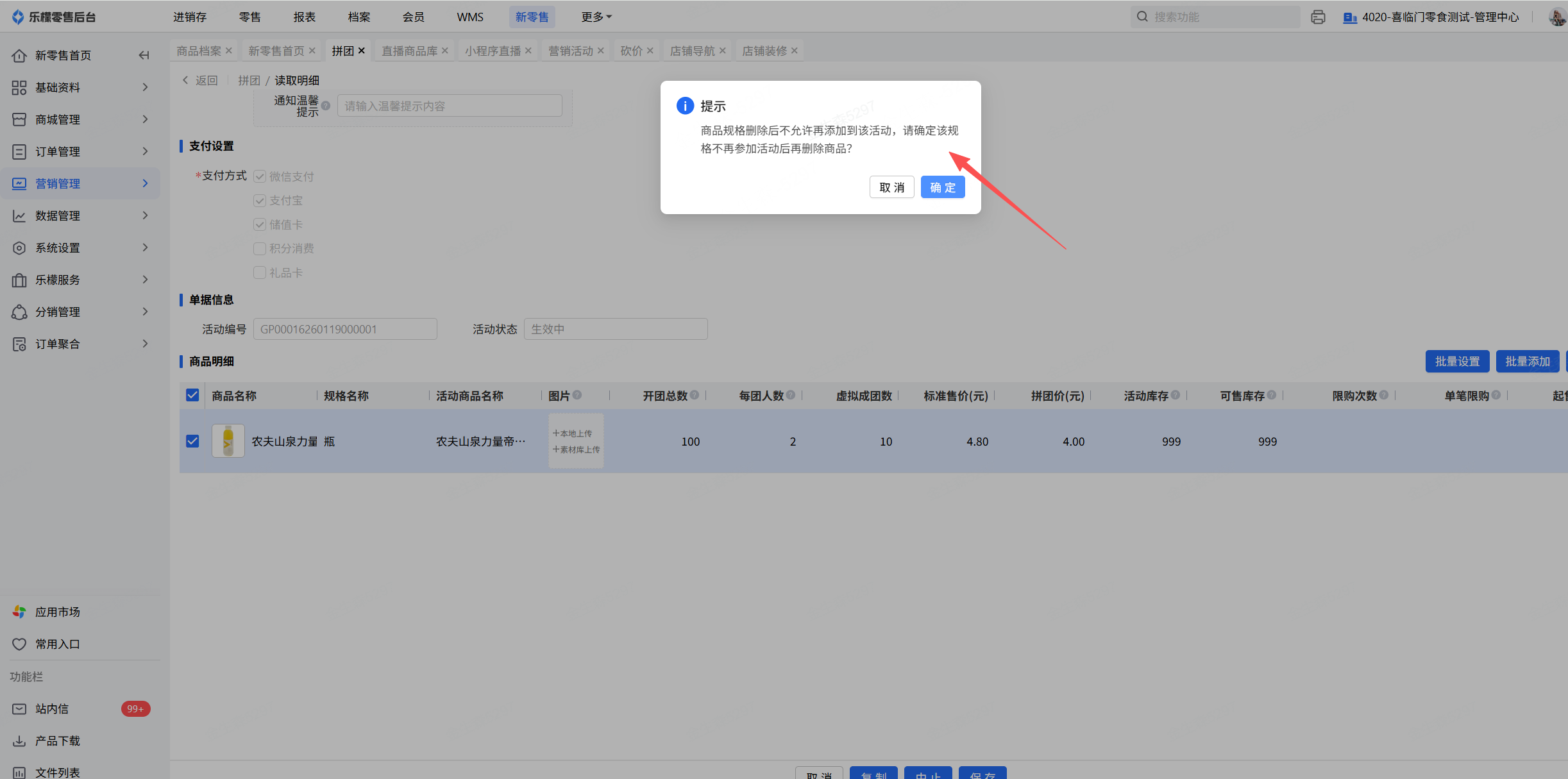 新零售V2-拼团活动商品无法添加