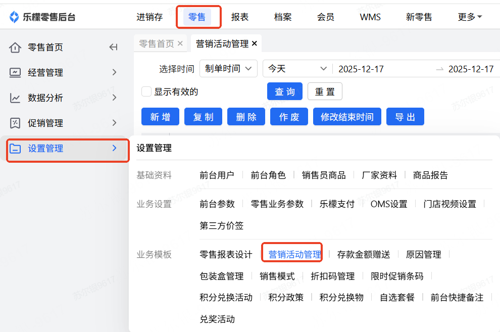 👉【操作路径】:零售-设置管理-营销活动管理-新增