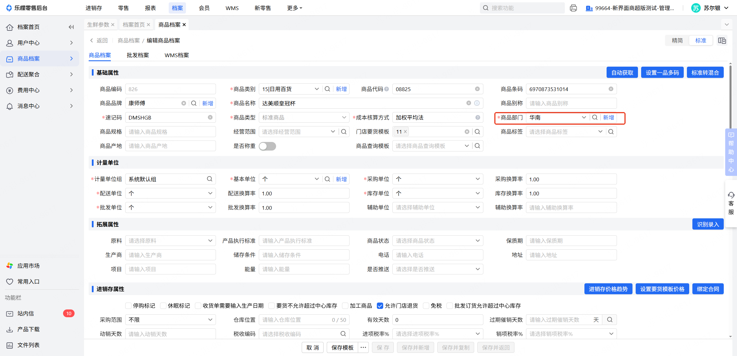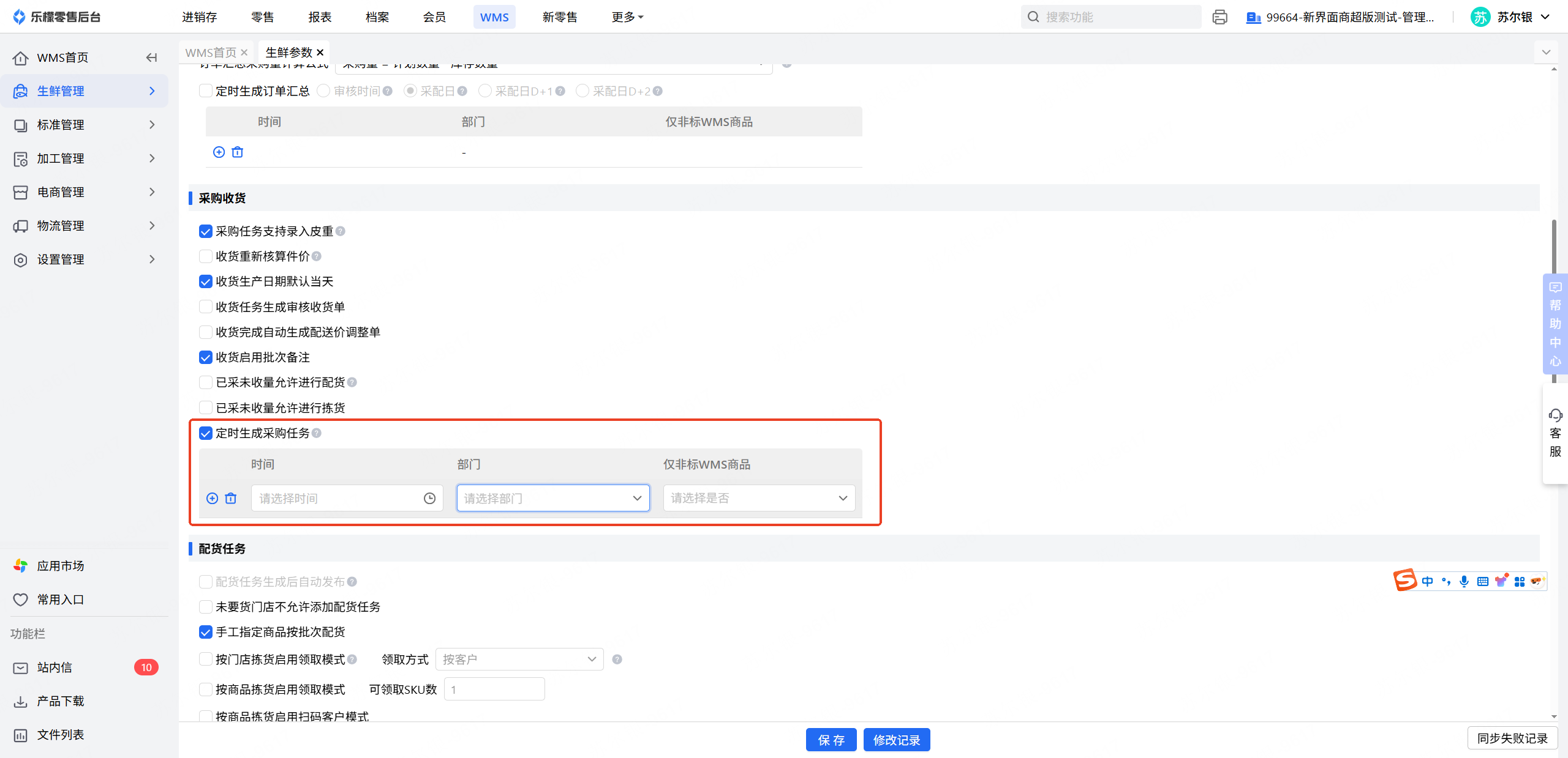 wms-生鲜管理-生鲜参数部门没有添加该商品的部门