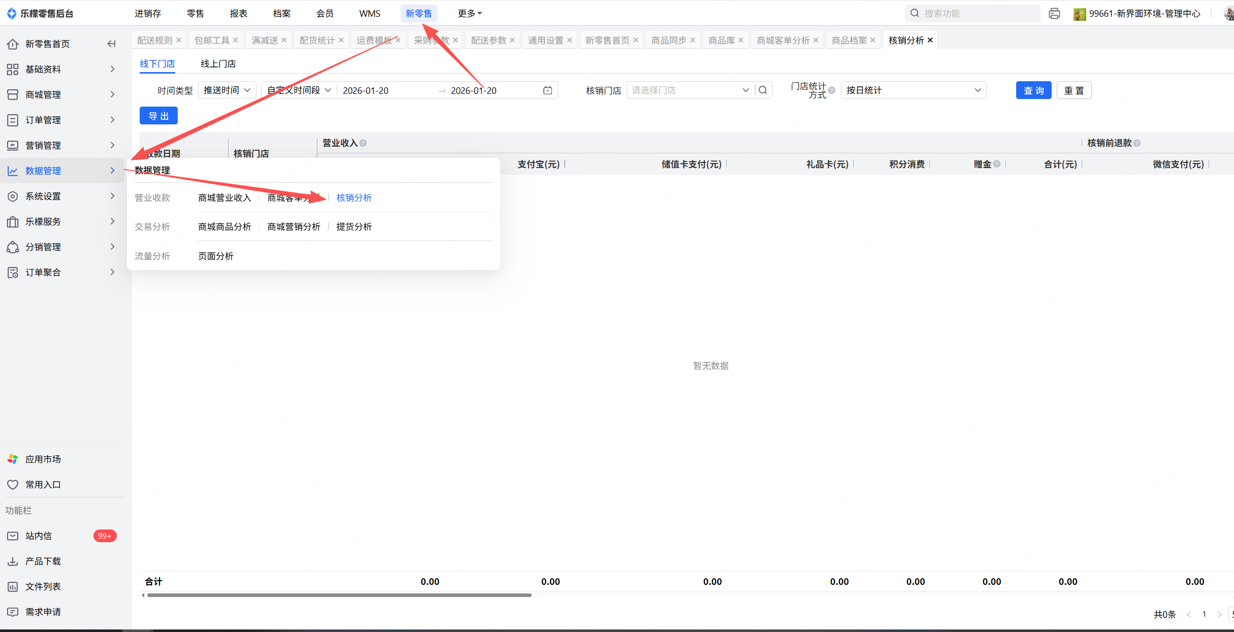 👉【功能路径】:乐檬零售-数据管理-核销分析