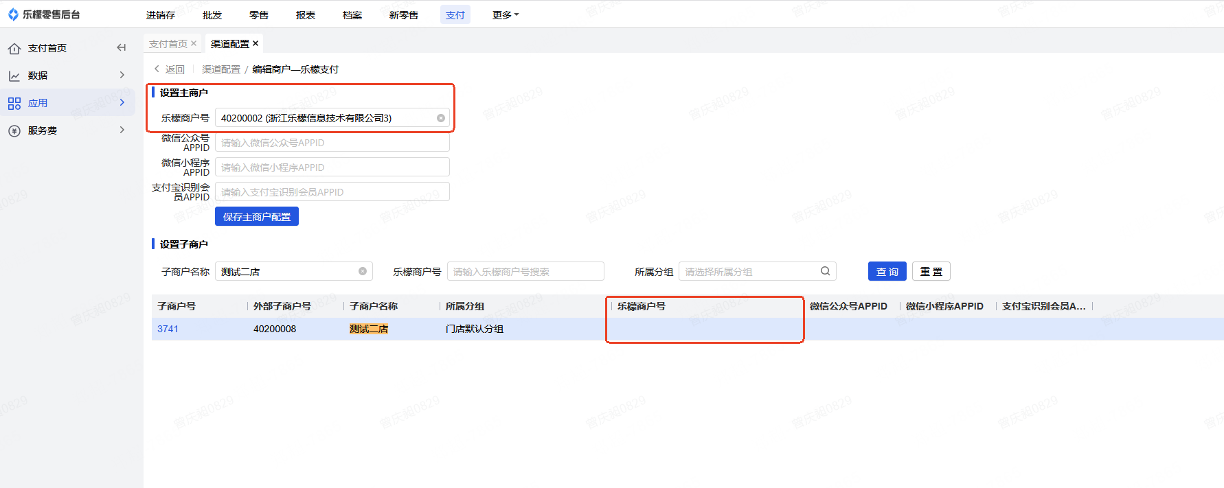 原因:上方主商户号配置了,当门店未配置乐檬商户号时,读取主商户号