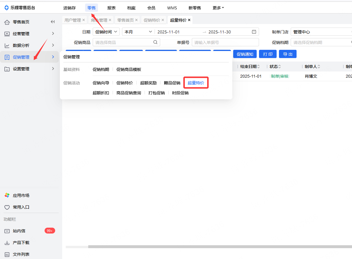 👉【操作路径】:·零售-促销管理-促销活动-超量特价
