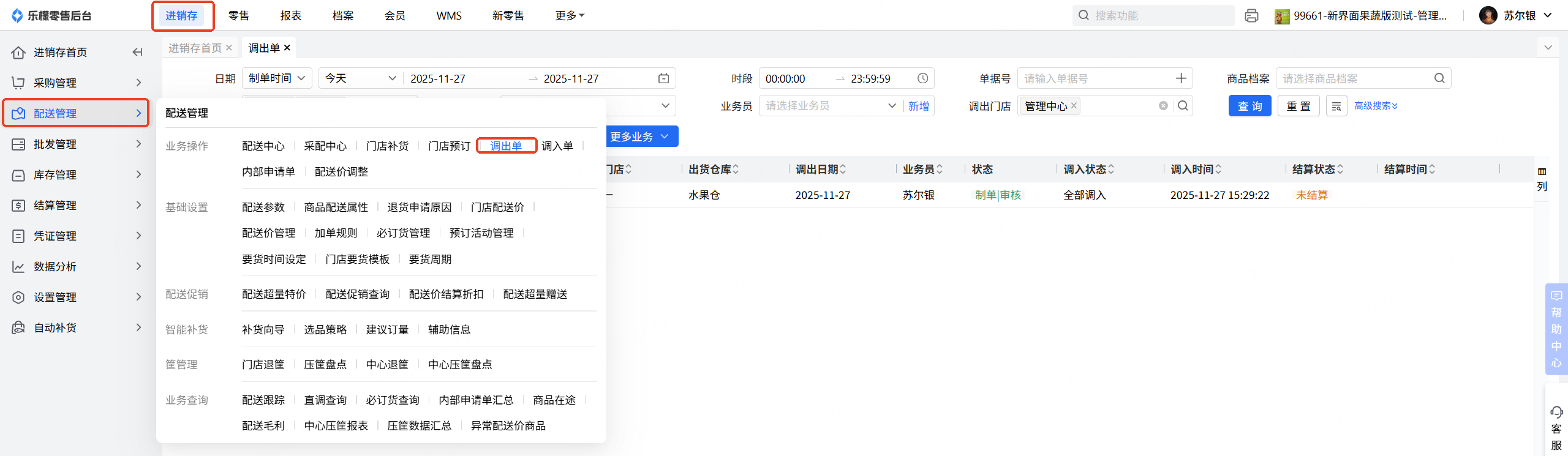 👉【操作路径】:·配送管理-进销存-调出单