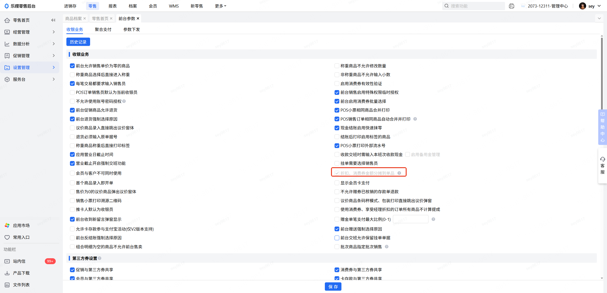 零售-前台参数-勾选折扣、消费券金额分摊到单品