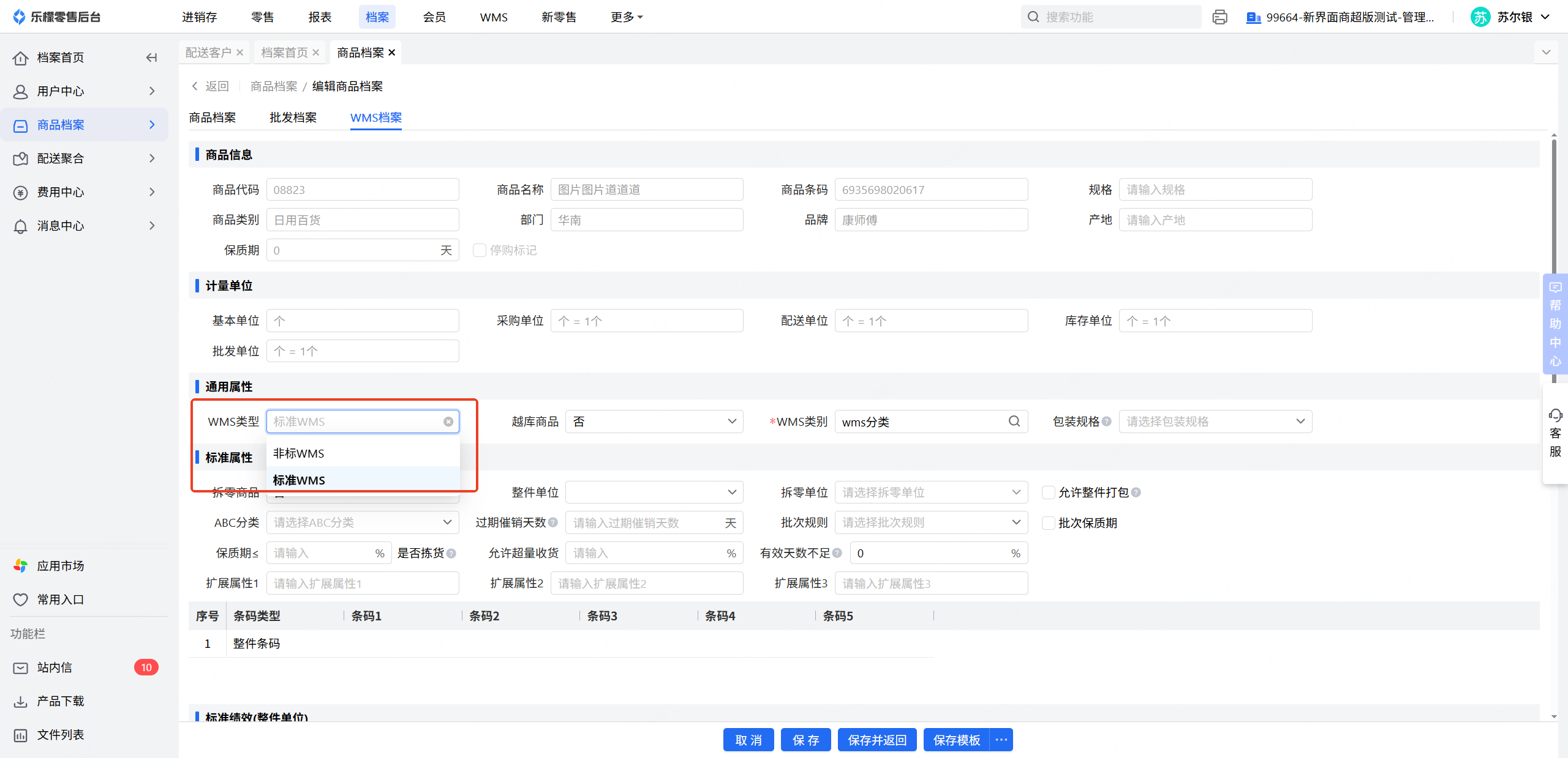 2.核实档案-商品档案-wms档案,对应商品是否已设置WMS类型