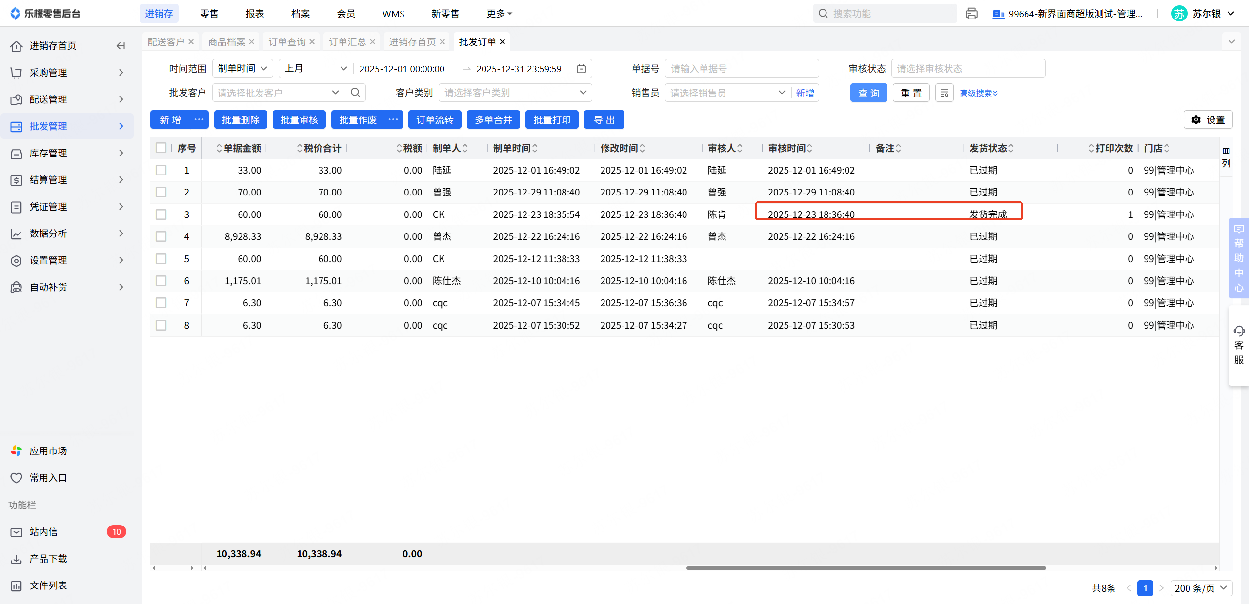 👉【操作路径】:1.核实在wms-设置管理-配送客户中,批发订单对应的客户是否已经添加