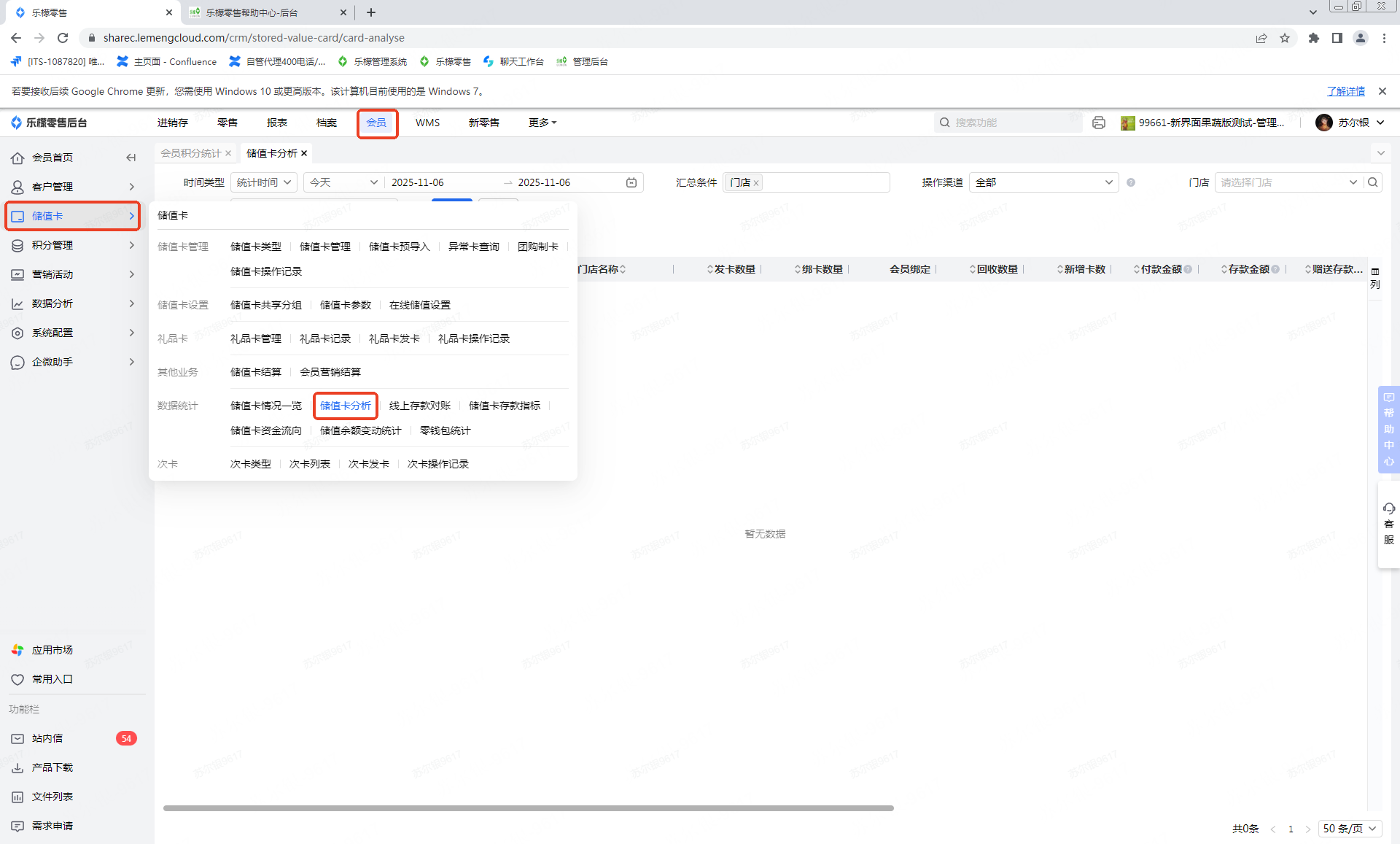 👉【操作路径】:·会员-储值卡管理-储值卡分析