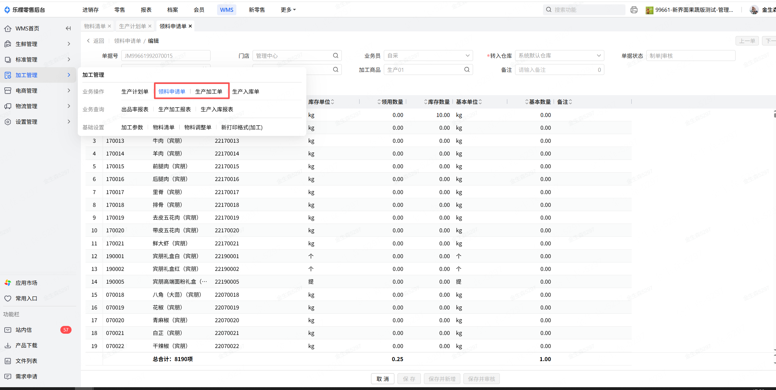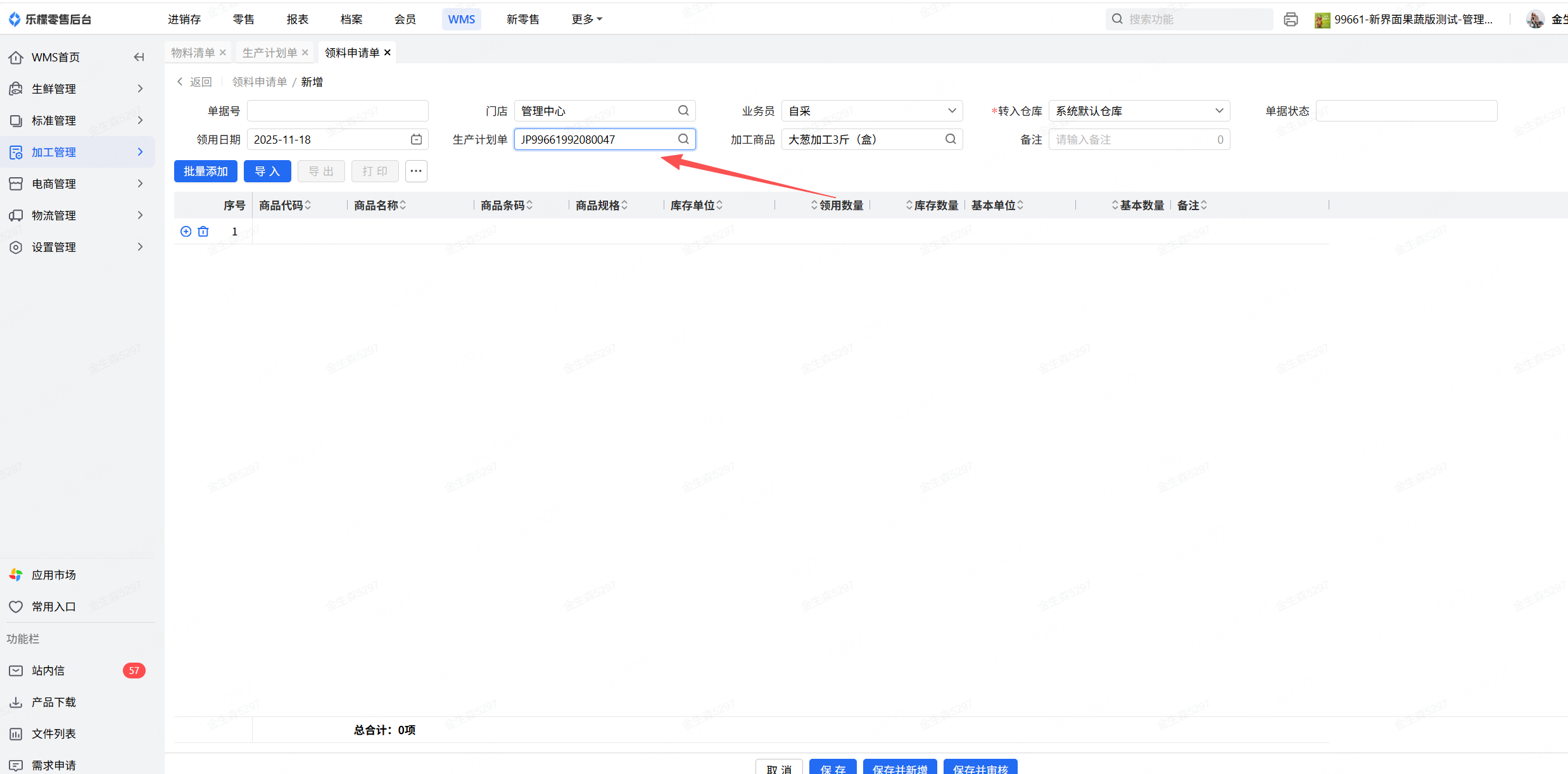 👉【操作路径】:·加工管理-业务操作-领料申请单、生产加工单