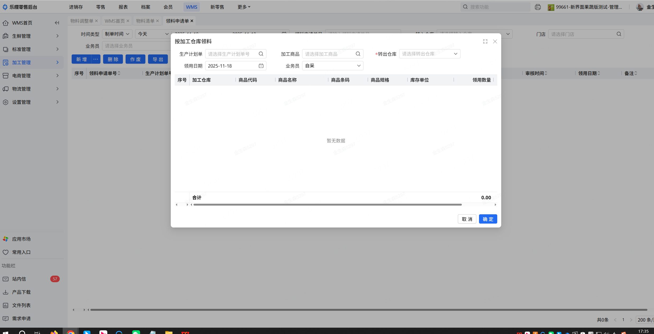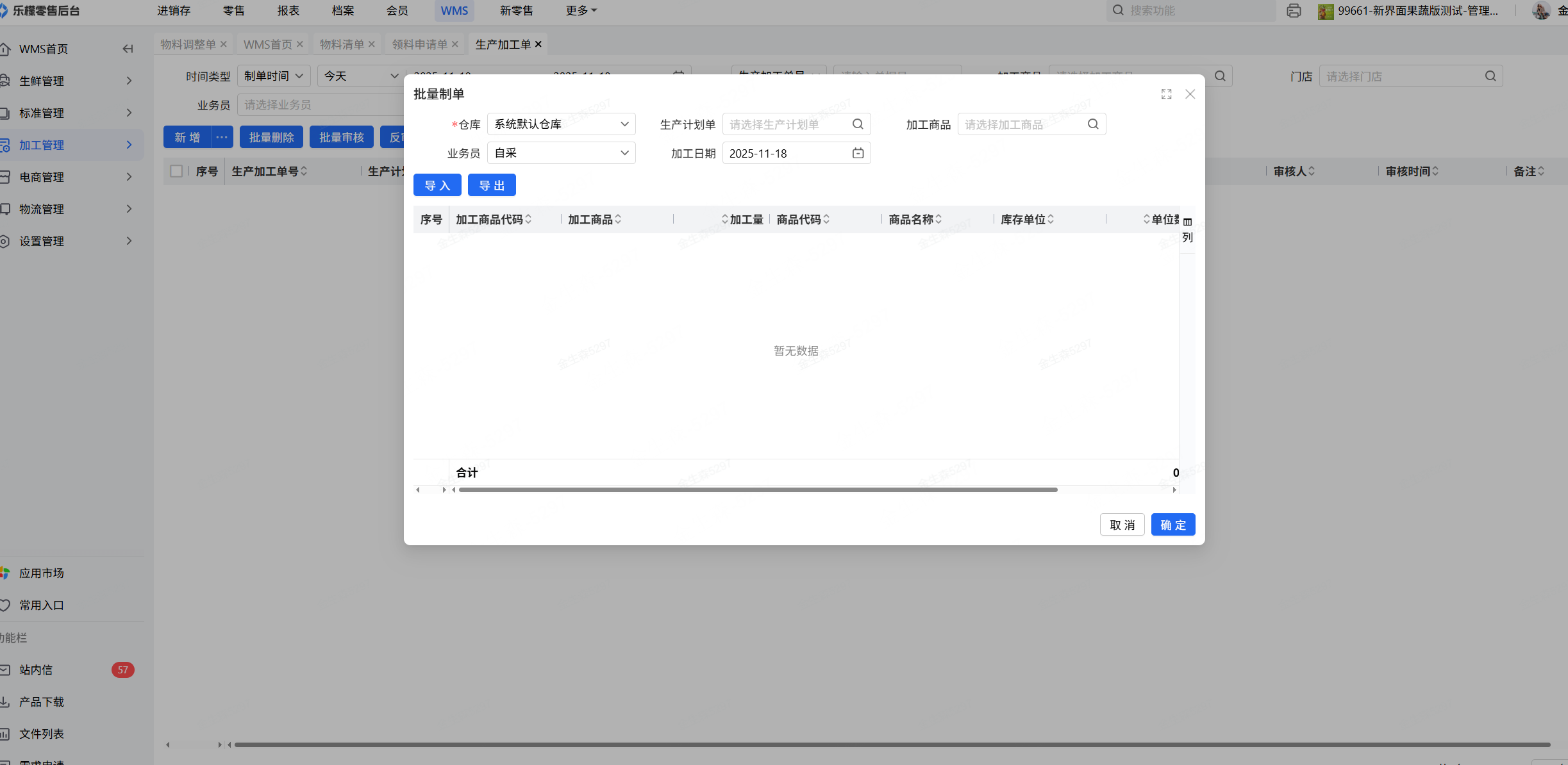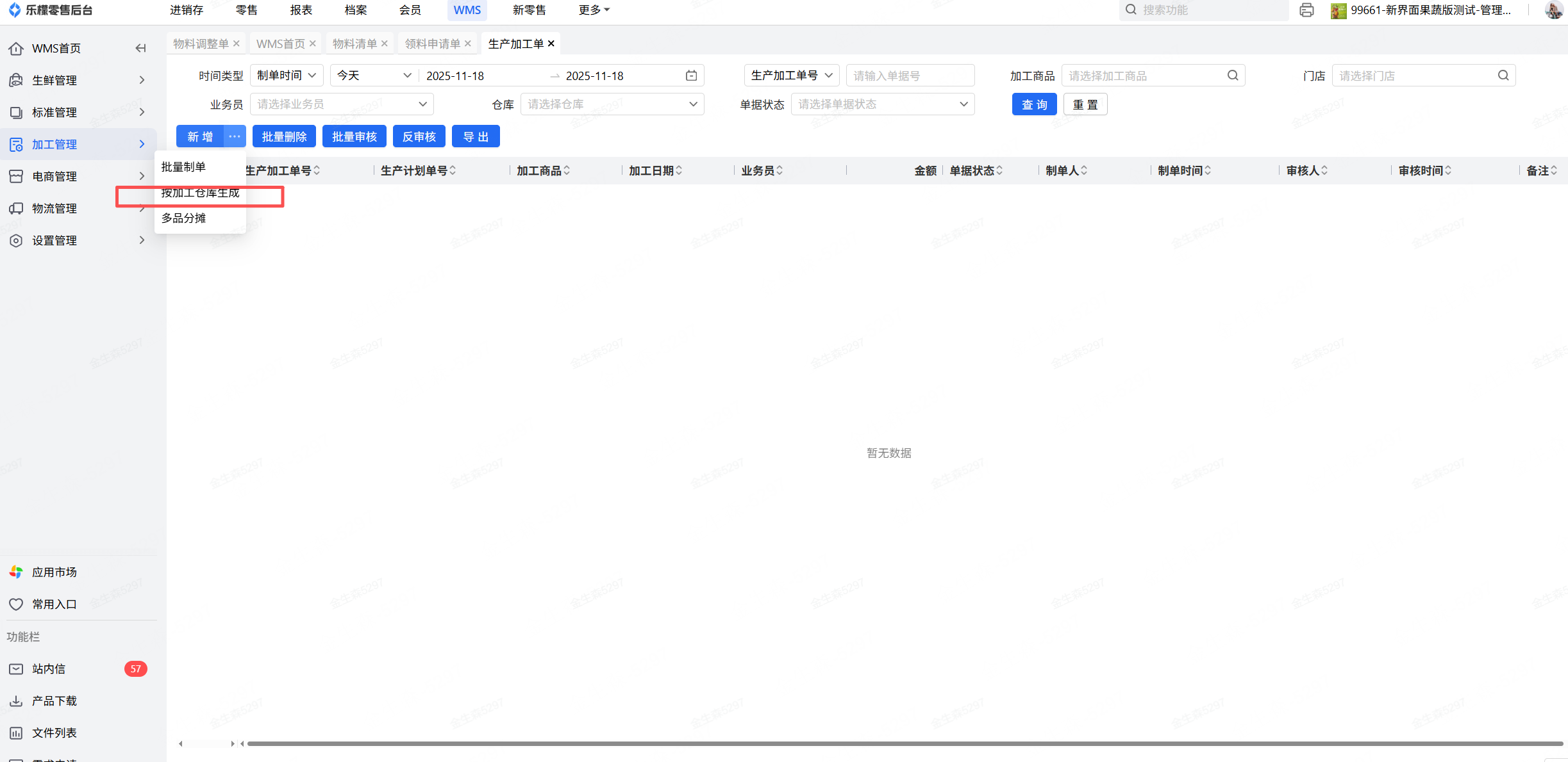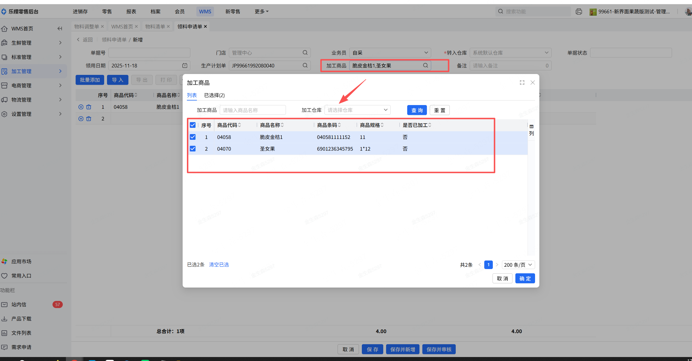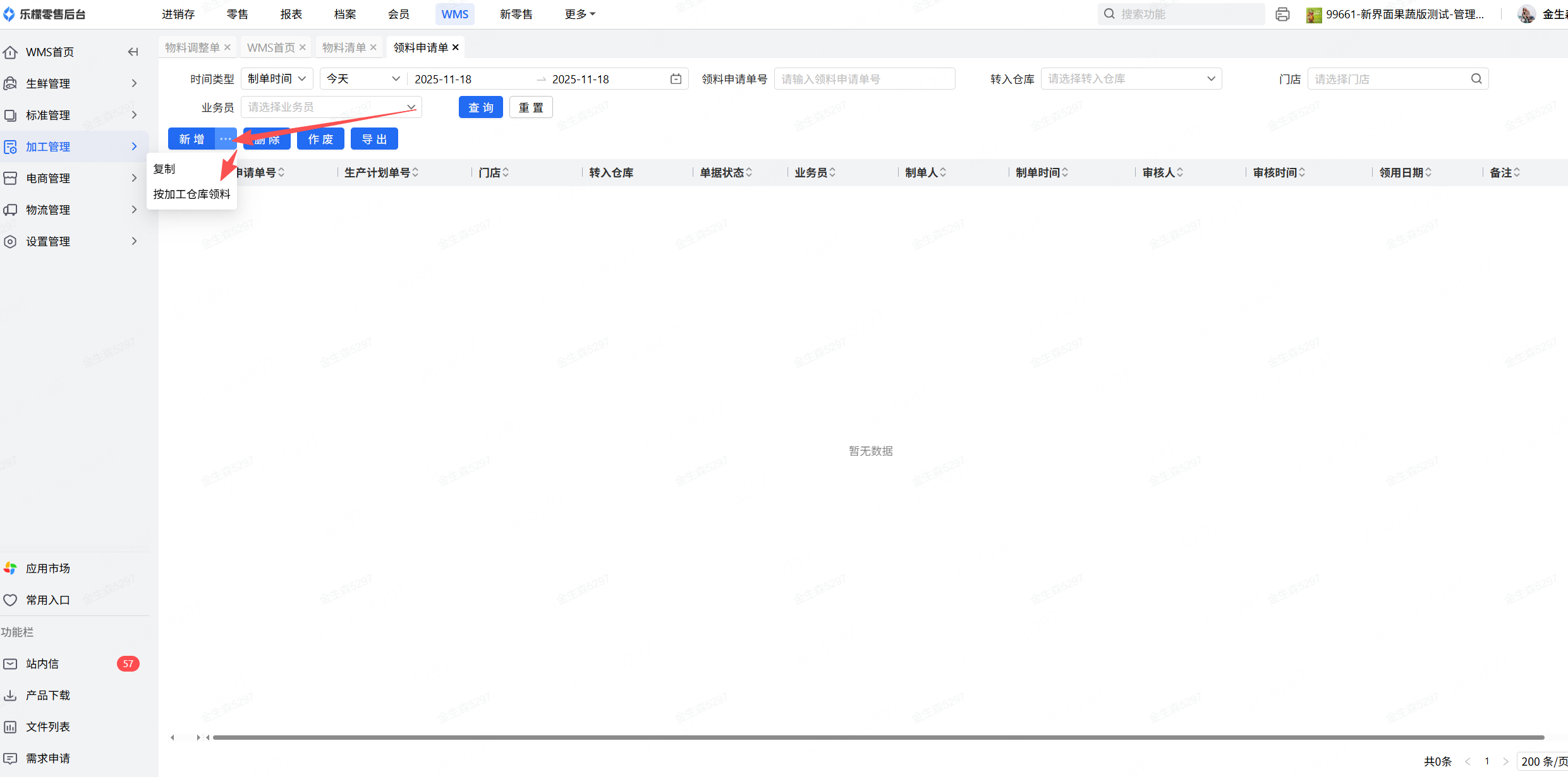 本次系统升级迭代,为满足客户管理需求,对“加工模块”进行优化,主要功能包括:1、物料清单管理支持“加工仓库”;2、领料申请单,支持“按加工仓库”生成单据;3、生产加工单,支持“按加工仓库”生成单据;