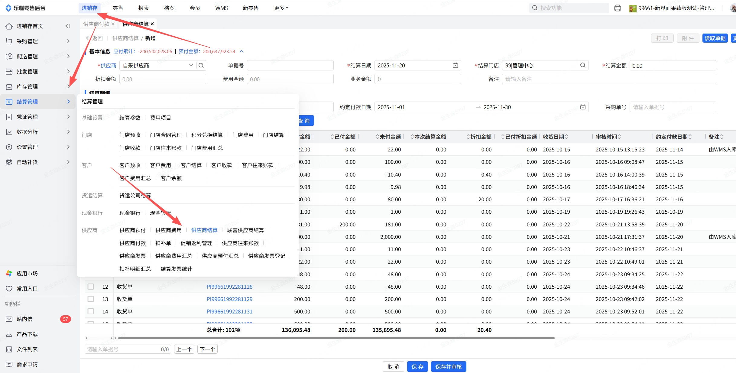 👉【操作路径】:·进销存-结算管理-供应商结算