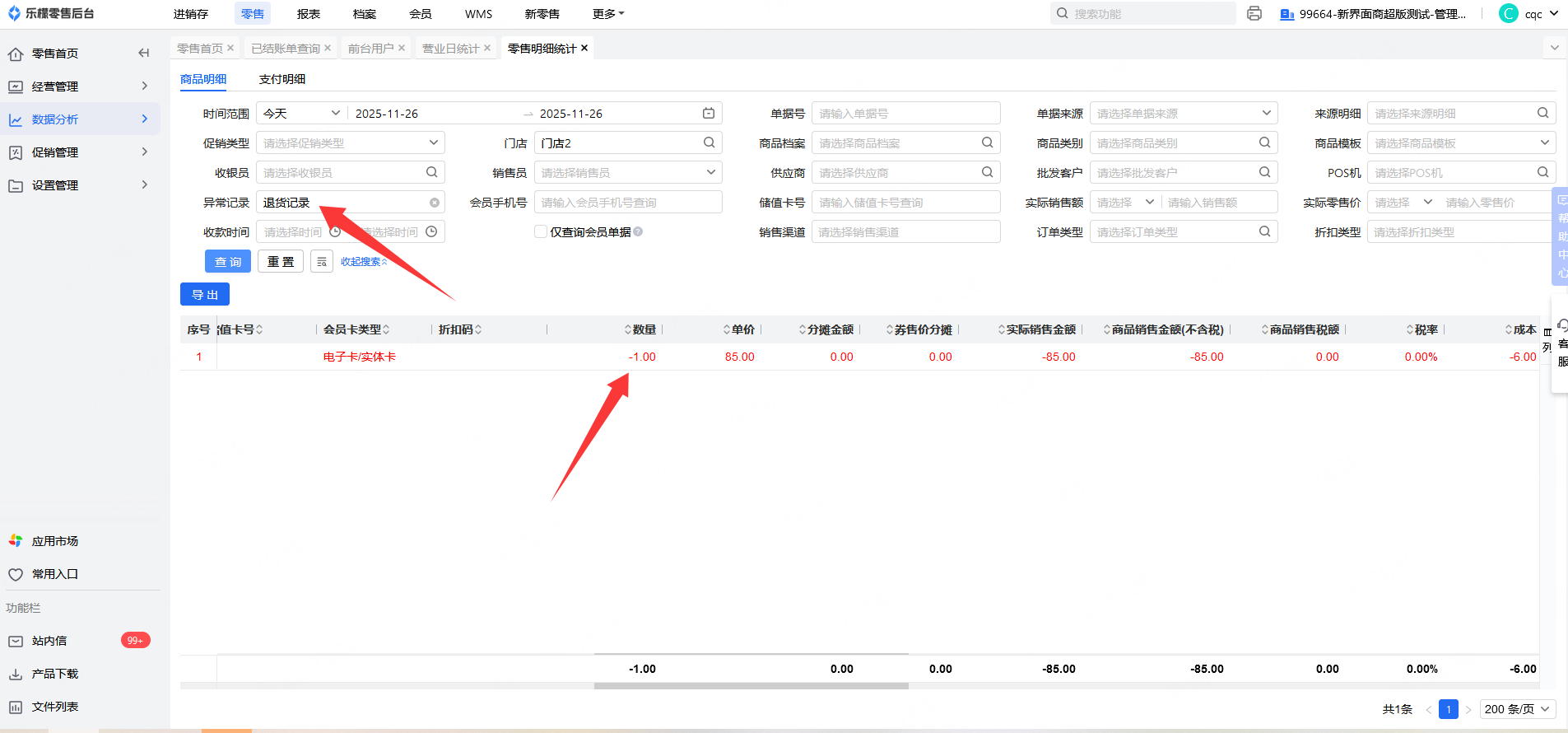 👉【操作路径】:·零售-数据分析-营业统计-零售明细统计