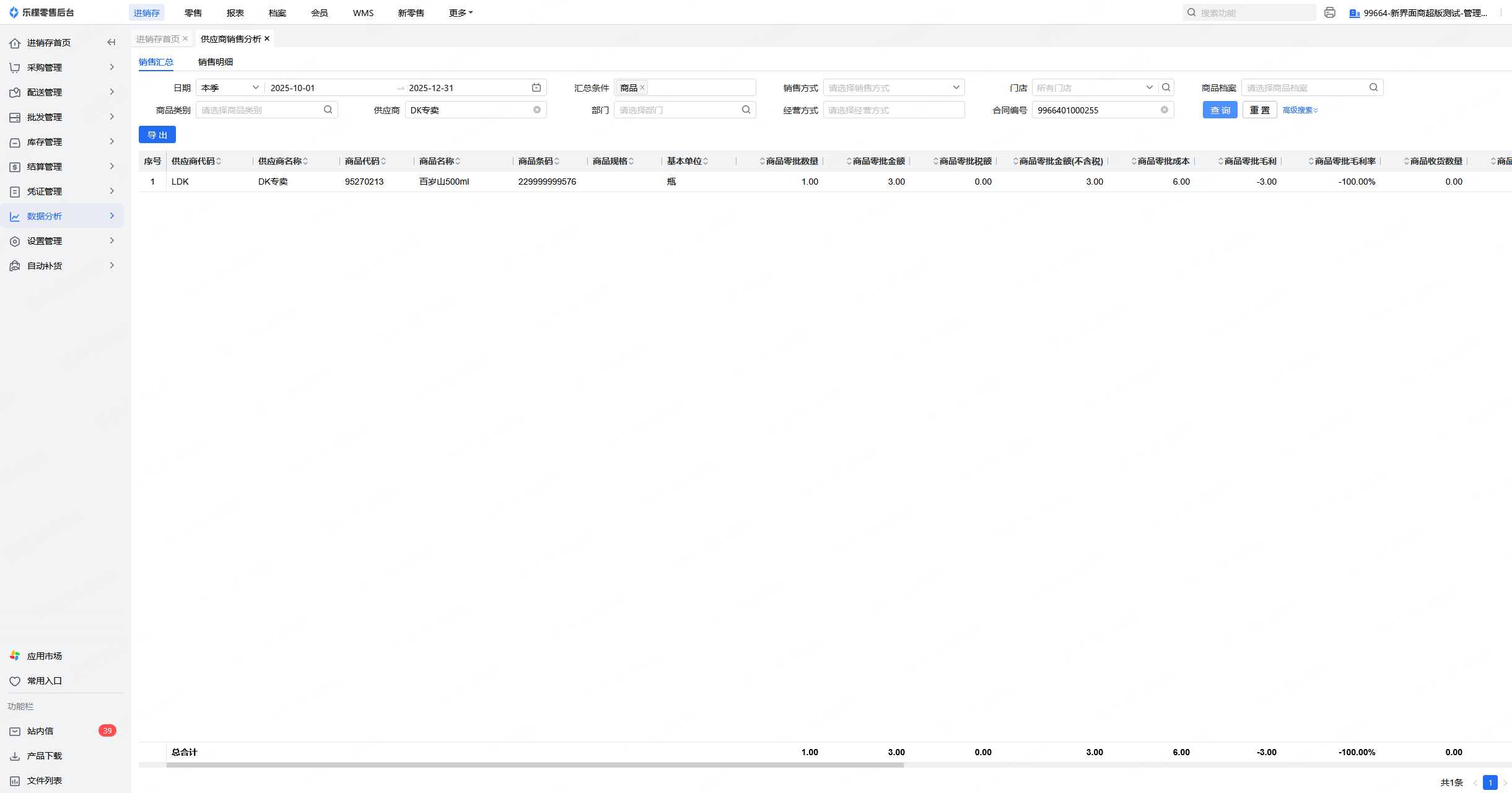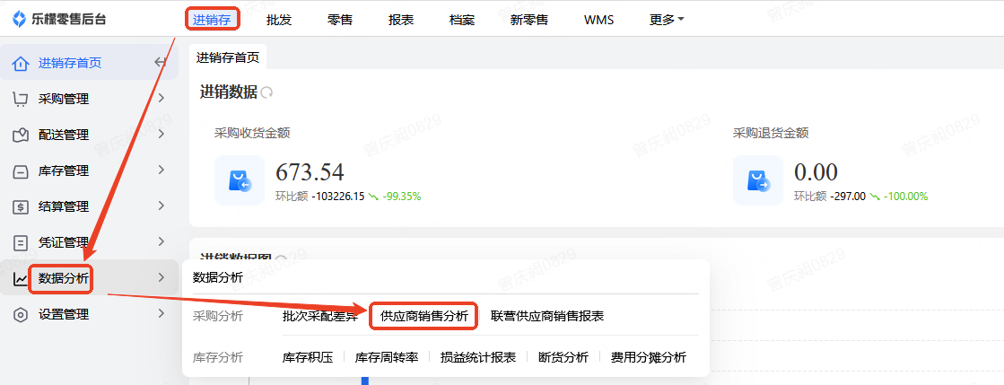 👉【操作路径】:进销存-数据分析-供应商销售分析